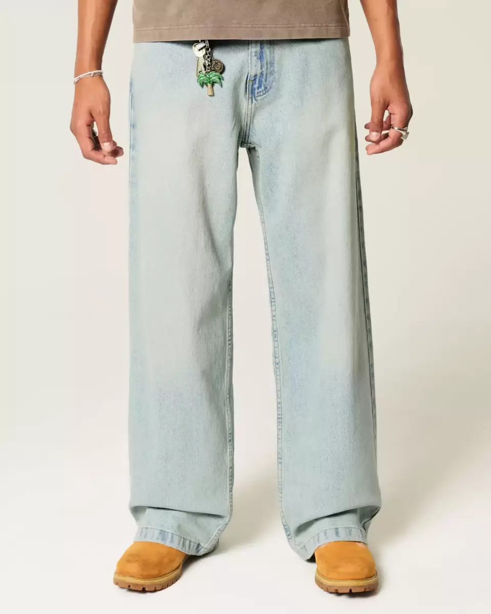 Comfortable denim jeans in a light wash, designed with a super baggy leg. Fading, iconic 5-pocket styling. Imported.