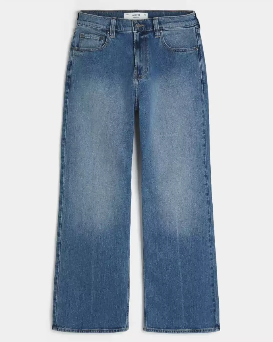 Comfortable denim jeans designed with a baggy leg and bootcut opening. Medium wash with fading, iconic 5-pocket styling. Imported.