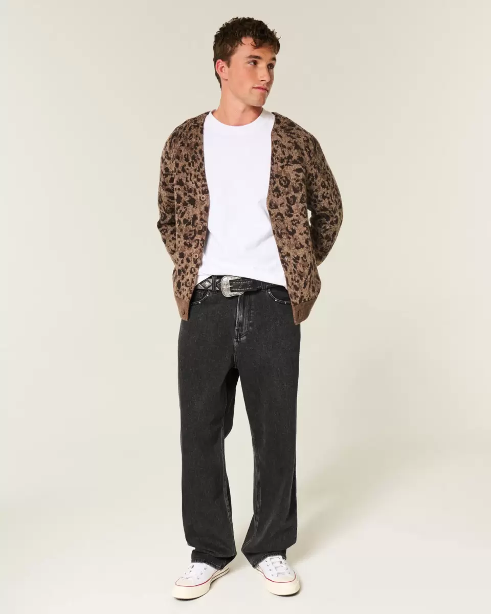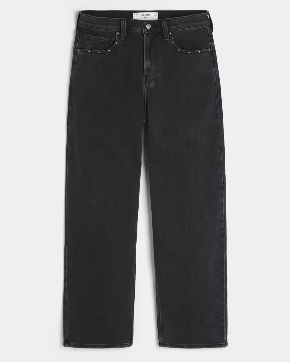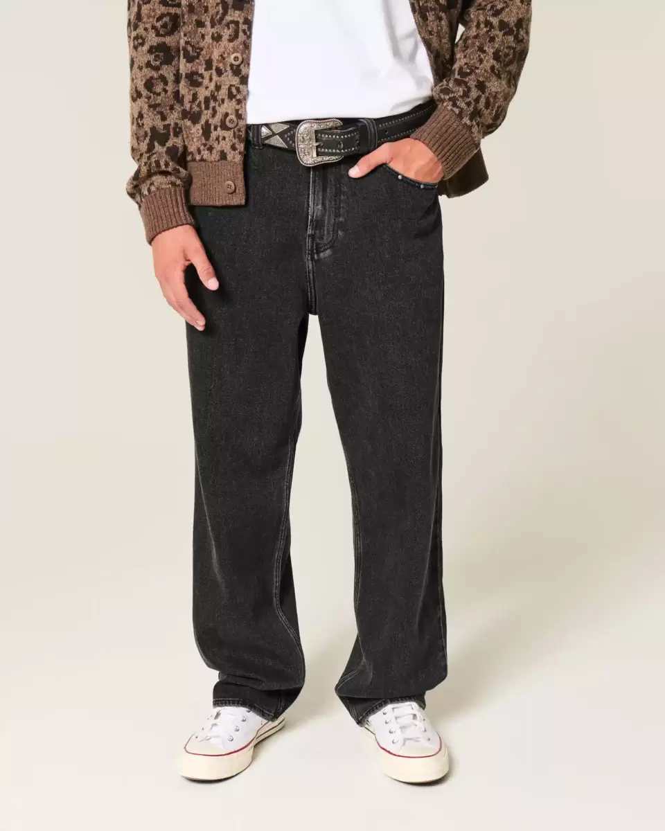Comfortable denim jeans in washed black, designed with a baggy leg. Stud details at pockets, iconic 5-pocket styling.