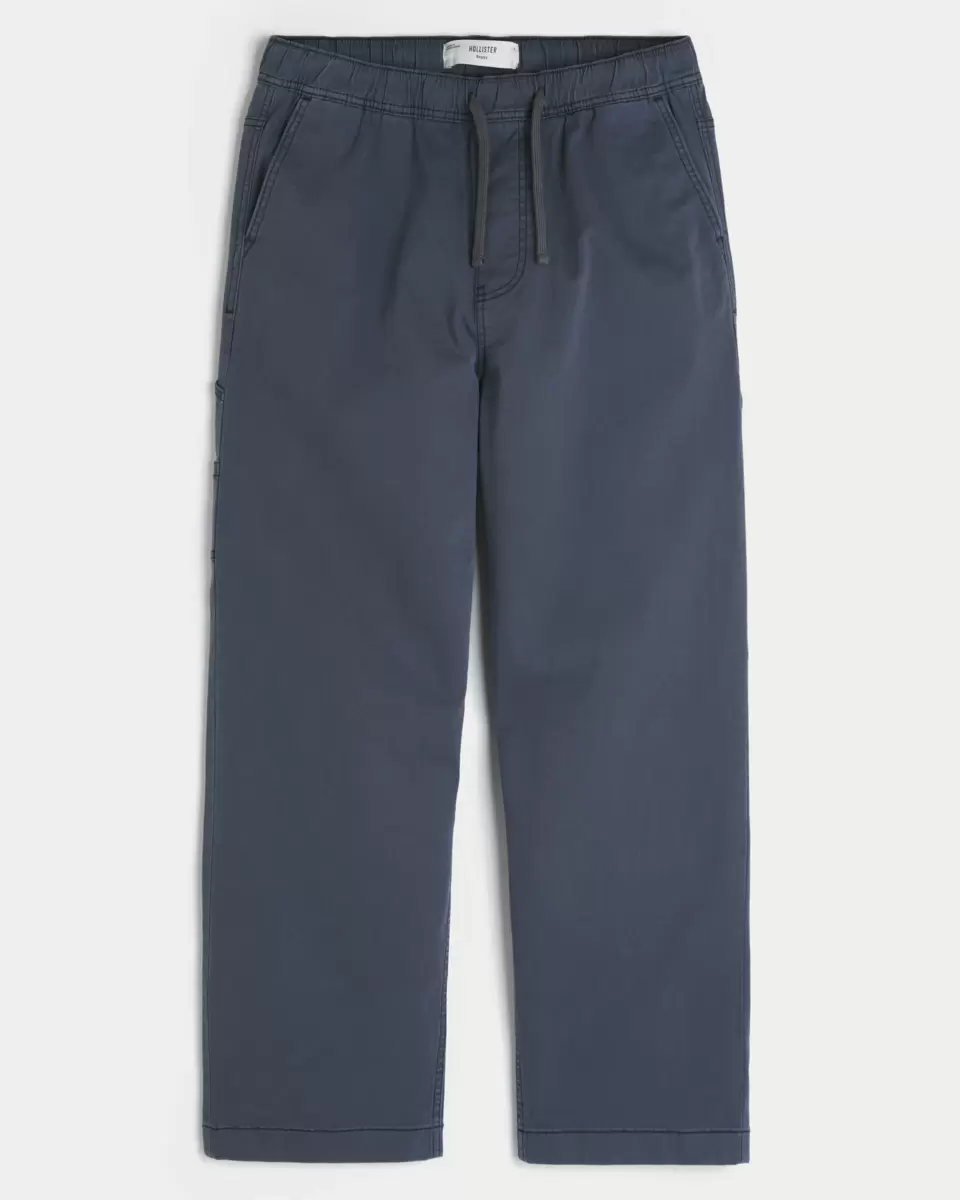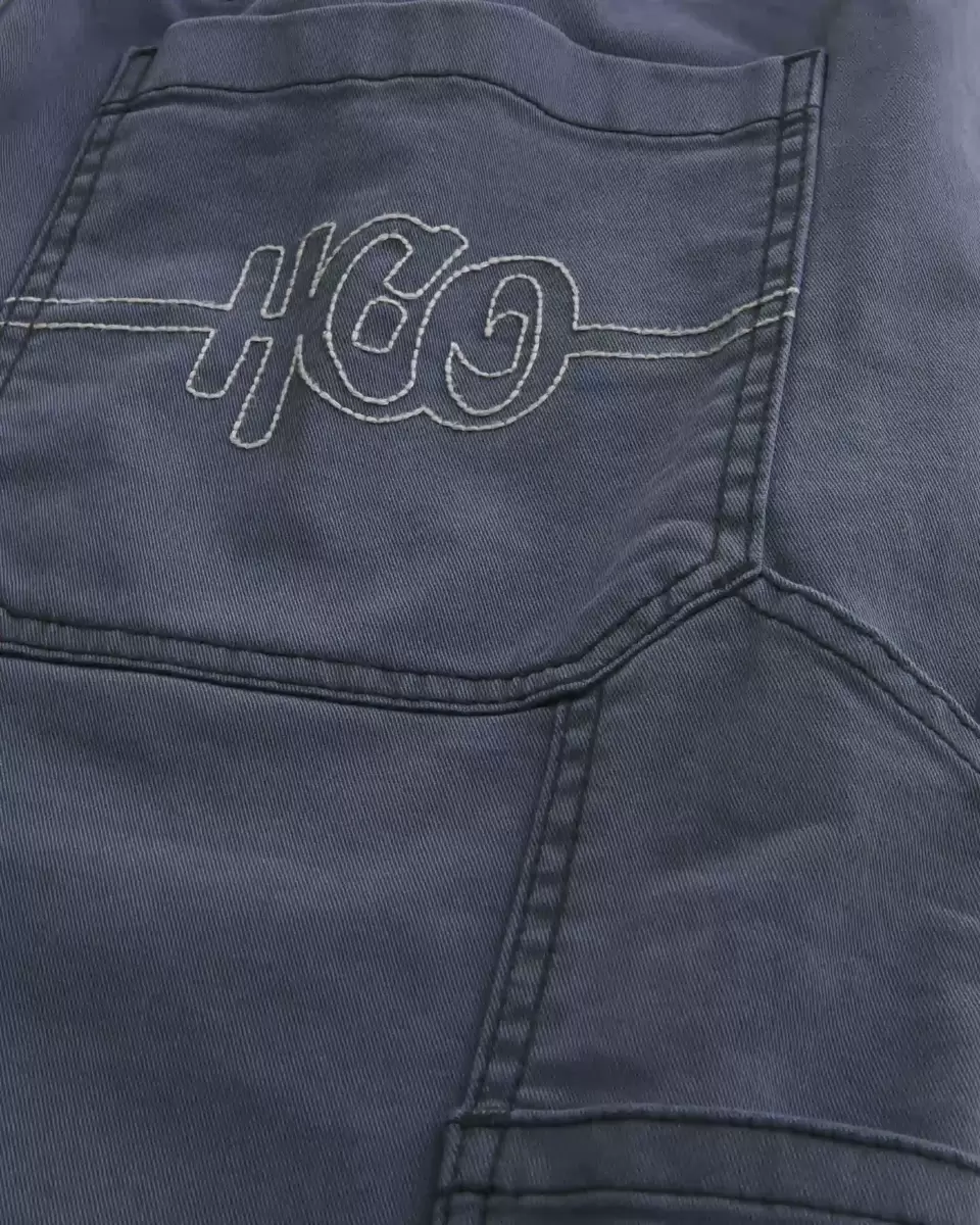 Comfortable twill painter pants designed with a baggy leg. Drawstring waist, extra pockets, embroidered logo detail at back pocket. Imported.