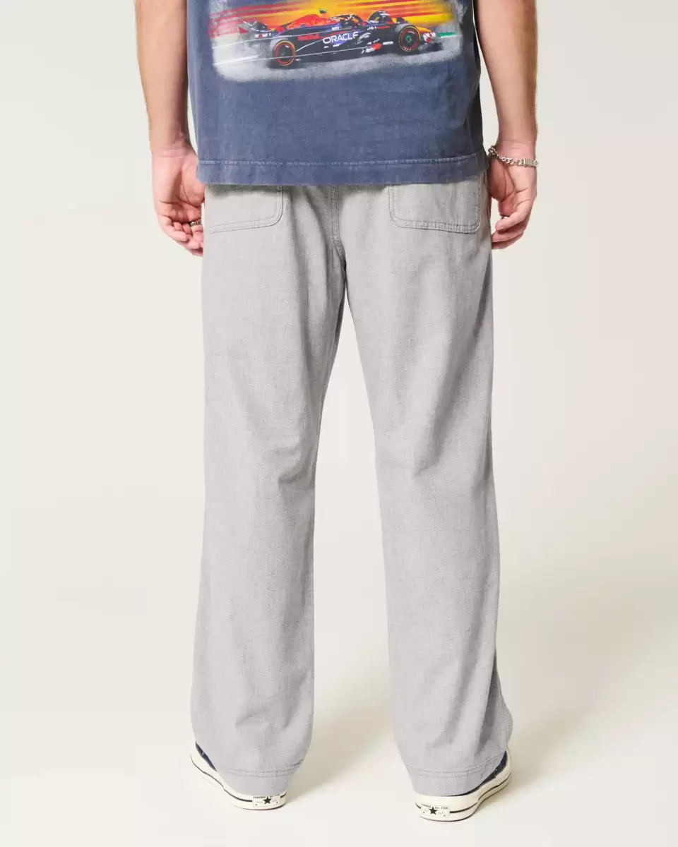 Comfortable pants in a soft linen blend, designed with a baggy leg and flex waist. Pockets. Imported.