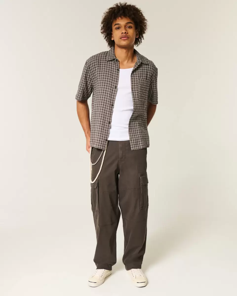 Super comfortable and skater-inspired, these baggy pants feature side cargo pockets. Twill fabric. Imported.