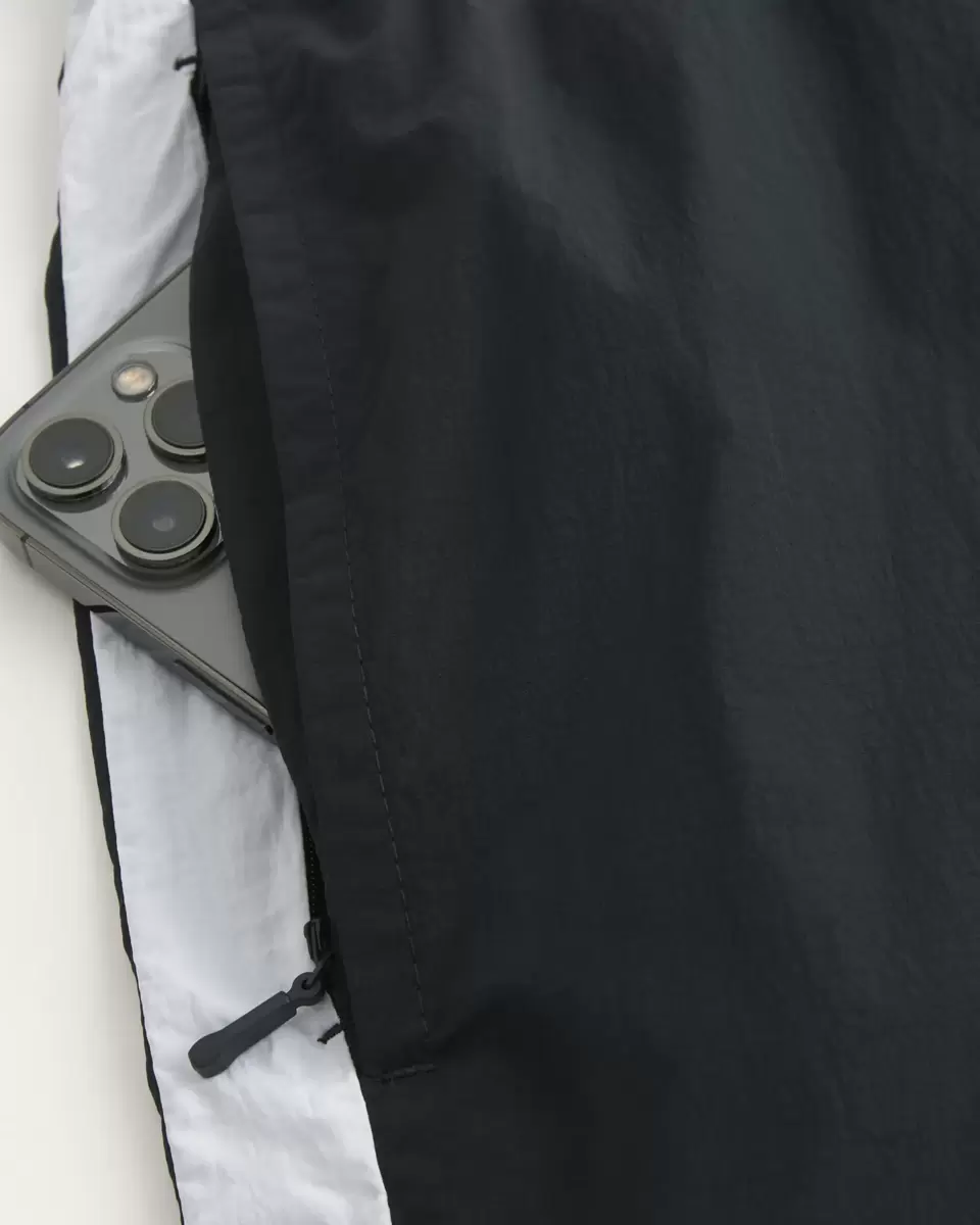 Ultra-comfortable track shorts in 100% nylon, designed with a drawstring waist and right zipper pocket. Embroidered Rec & Leisure Division detail at left leg. Hits above the knee. Imported.