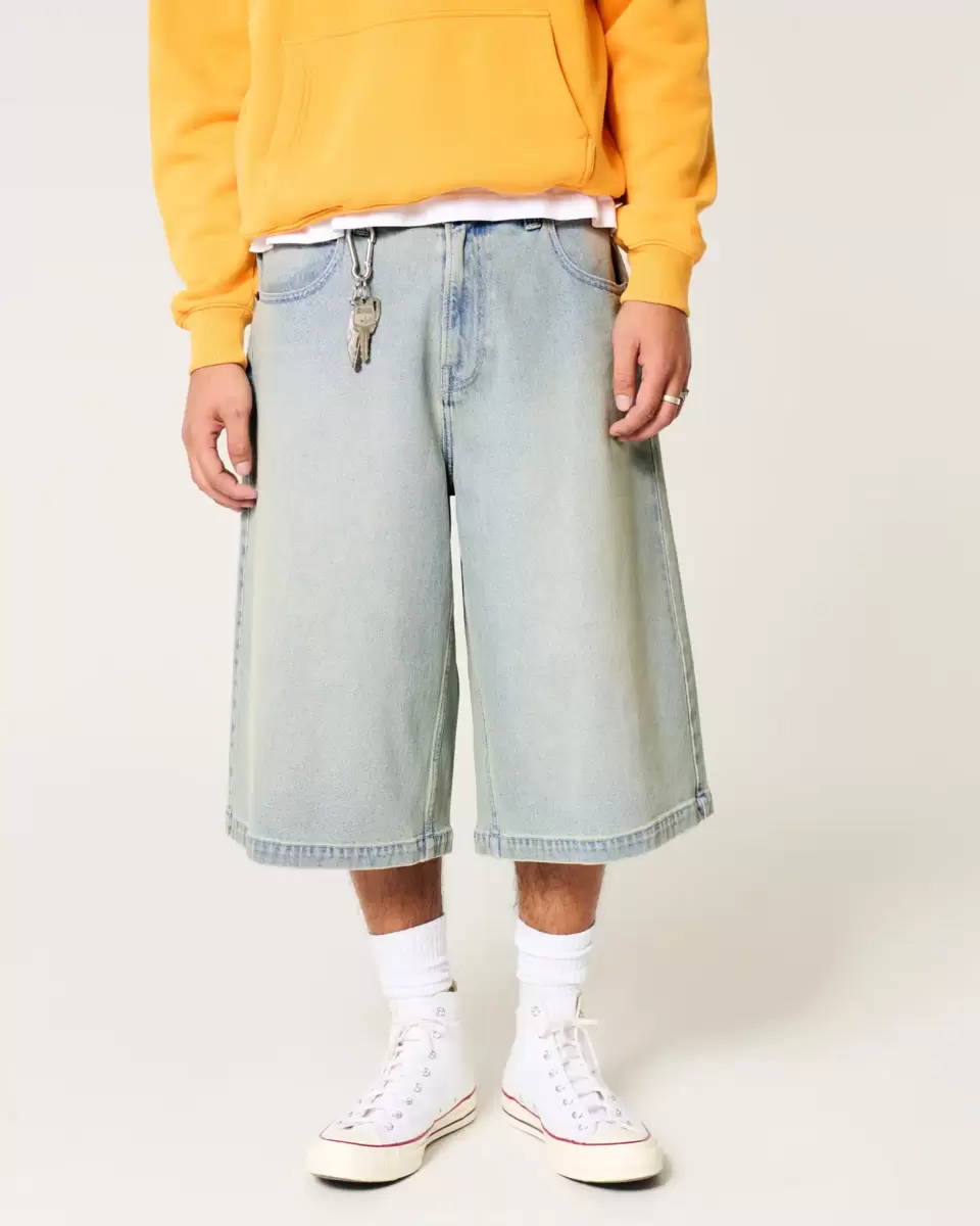 Classic half-length jeans designed with a baggy leg. Light wash, fading. Imported.