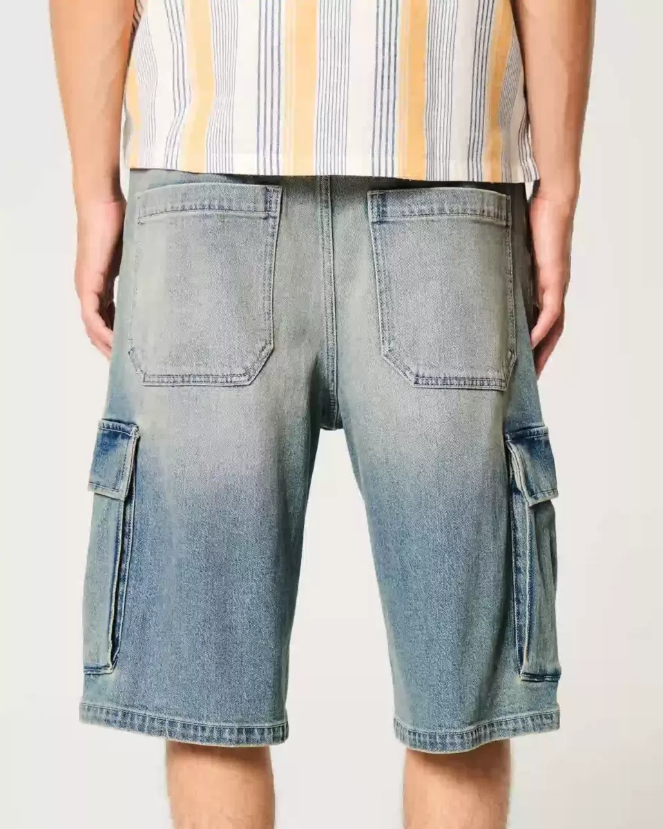 Medium Wash Super Baggy Denim Cargo Shorts