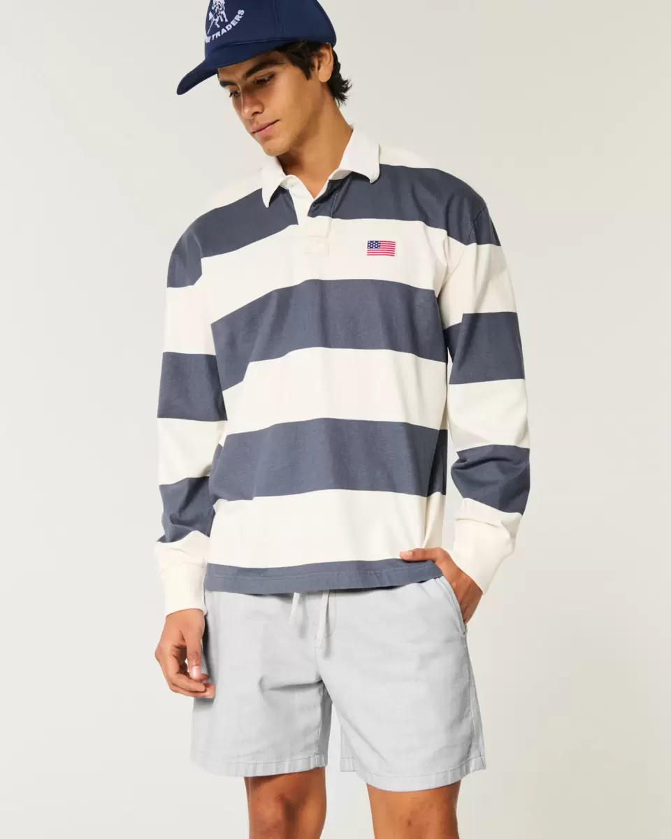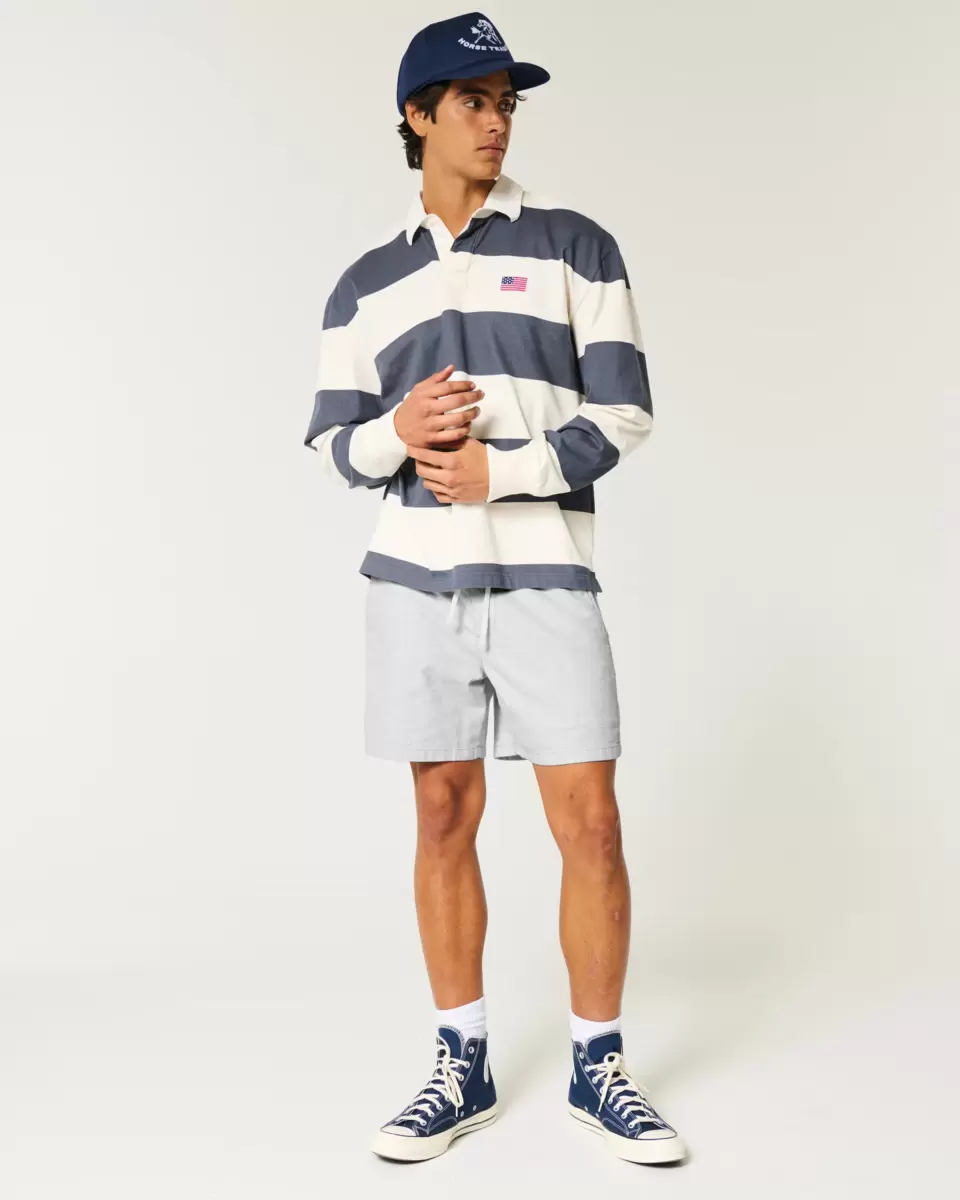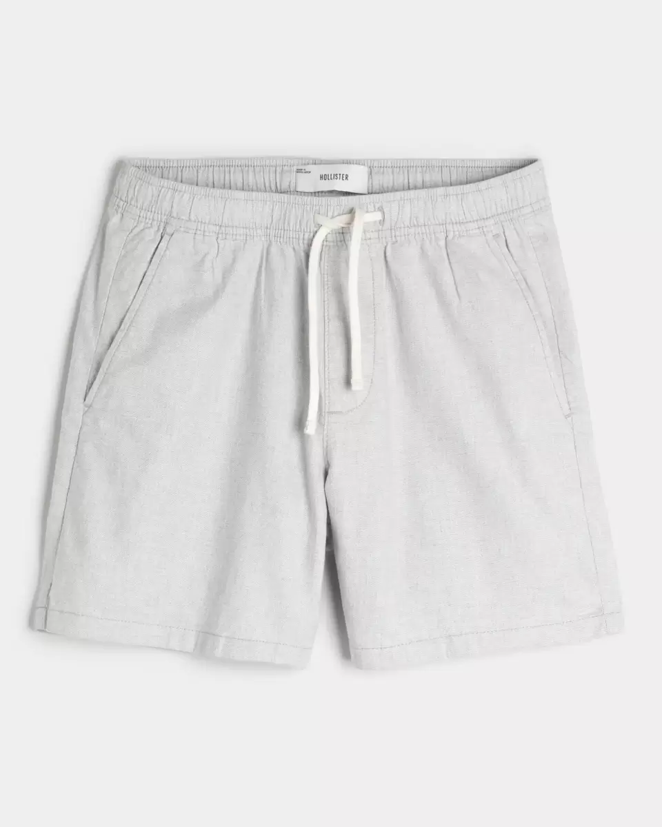 Comfortable shorts in a soft linen blend that hit mid-thigh, designed with a pull-on drawstring waist. Pockets. Imported.