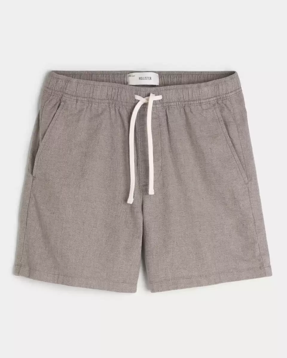 Comfortable shorts in a soft linen blend that hit mid-thigh, designed with a pull-on drawstring waist. Pockets. Imported.
