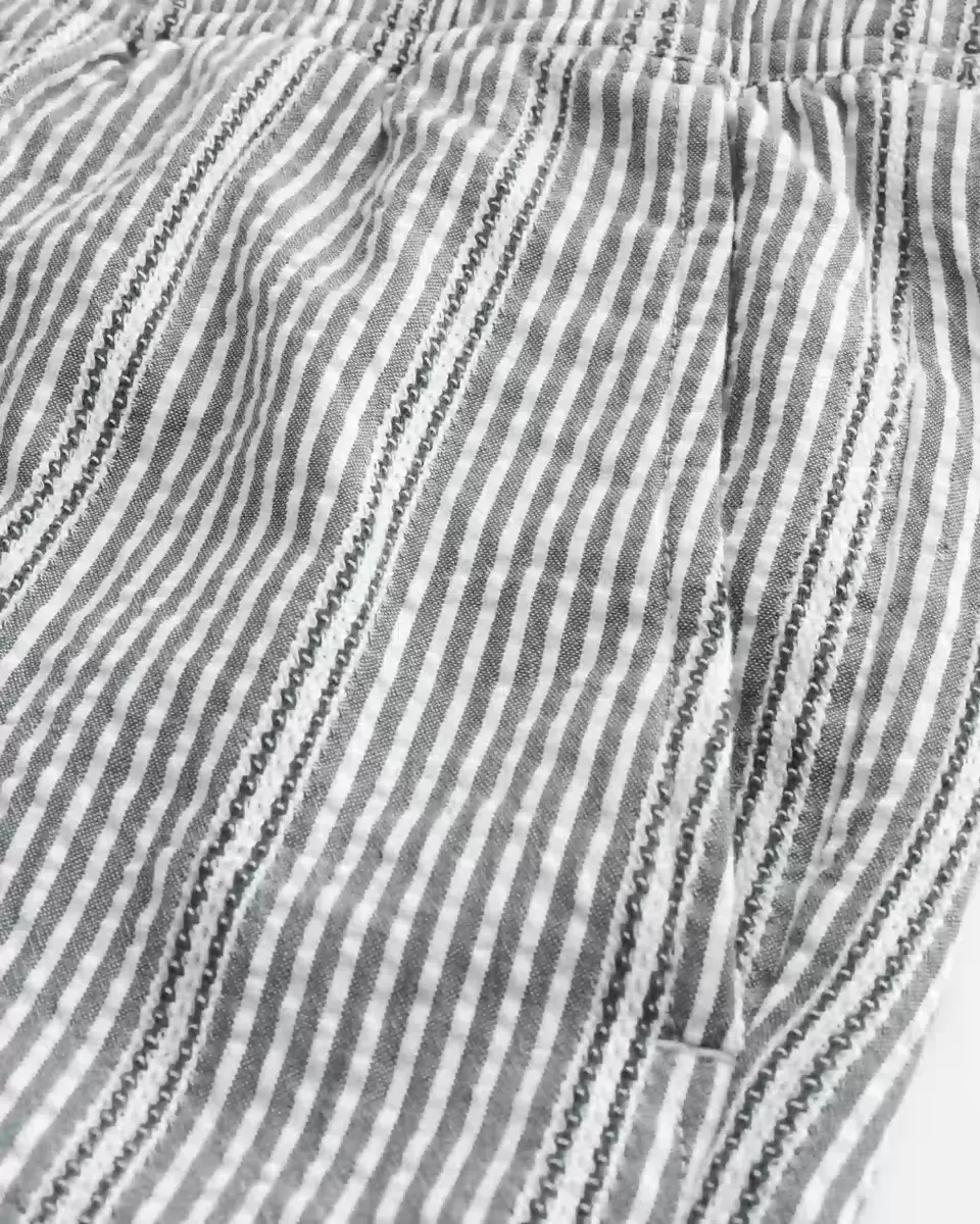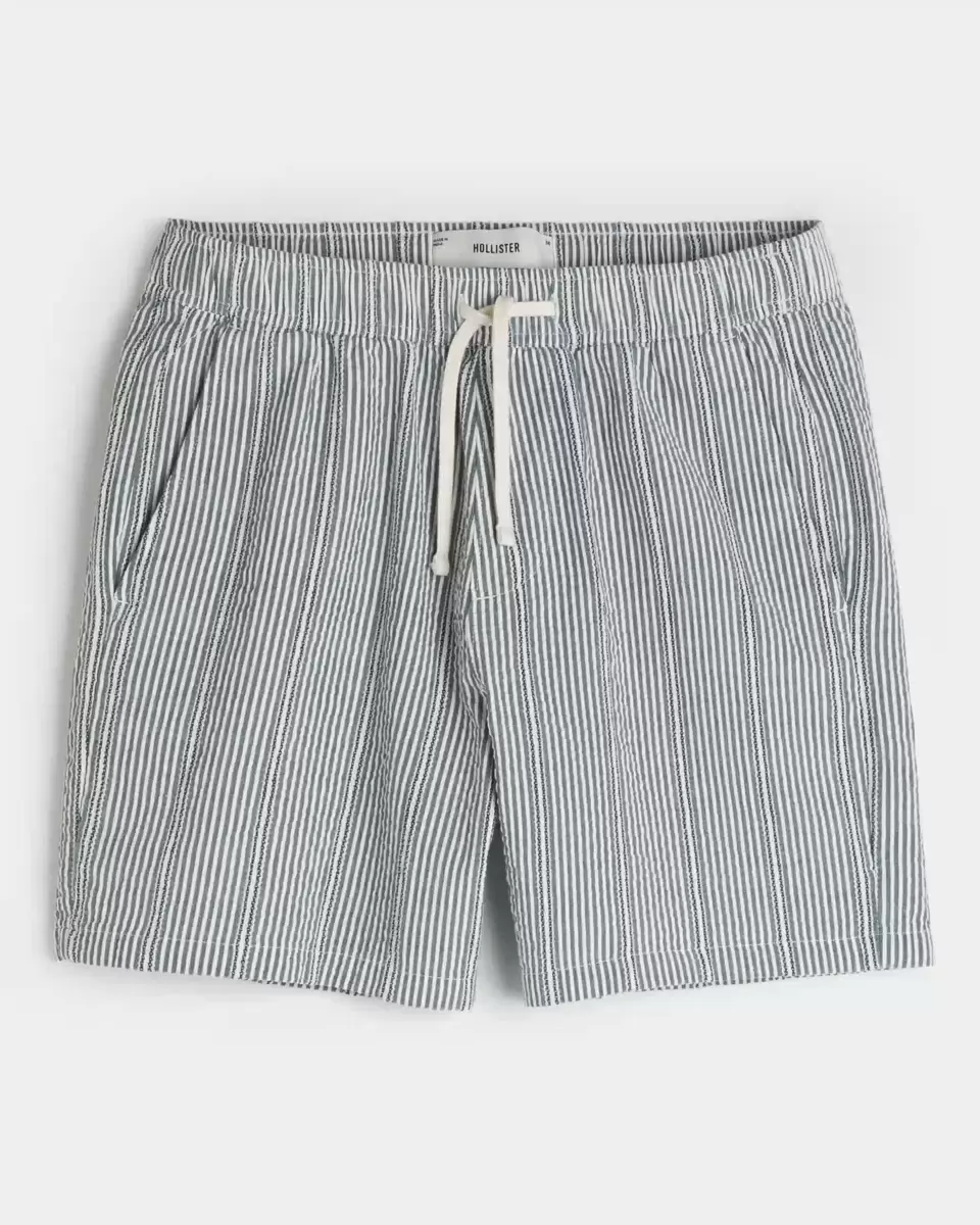 Comfortable shorts in soft cotton seersucker fabric, designed with a mid-thigh length. Pull-on drawstring waist, pockets. Imported.