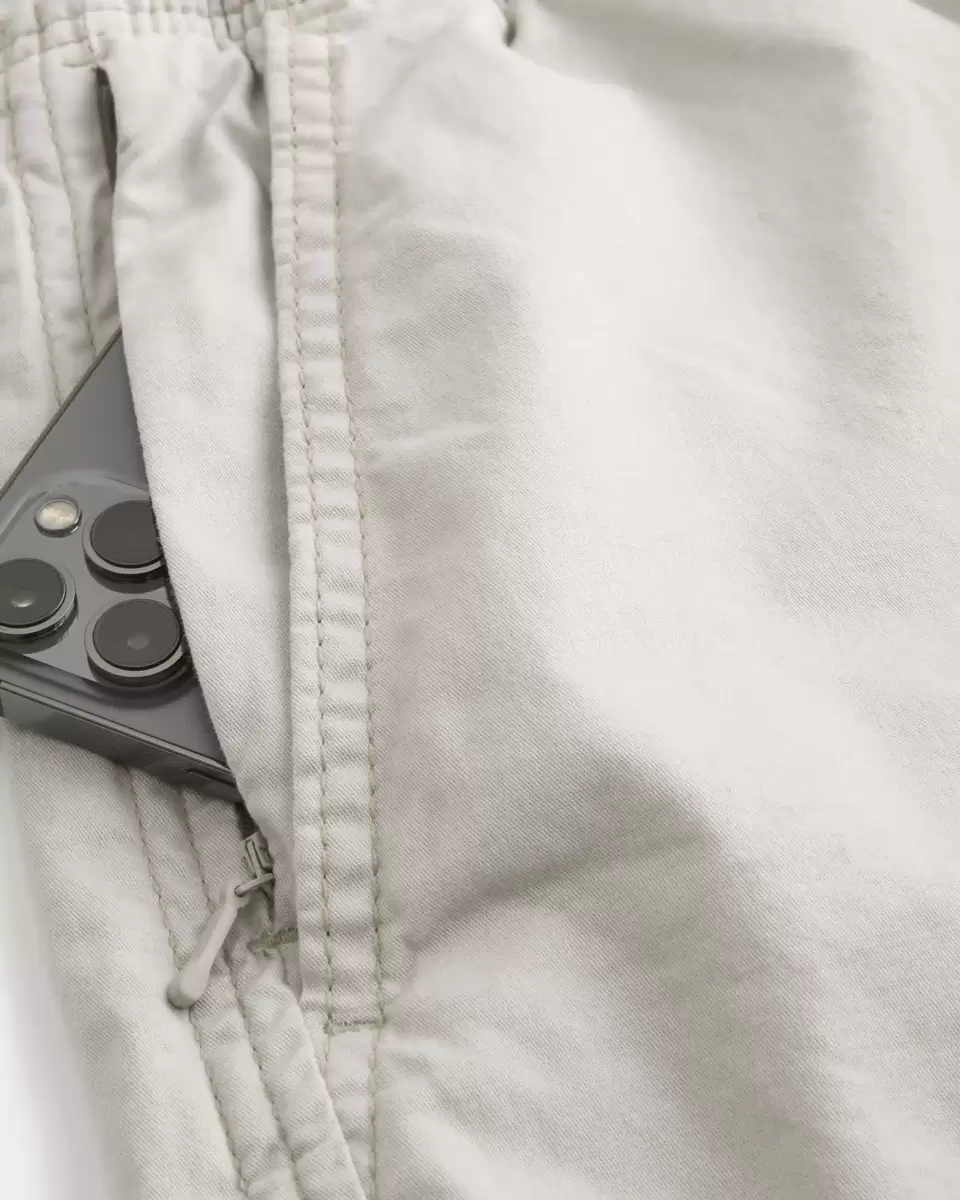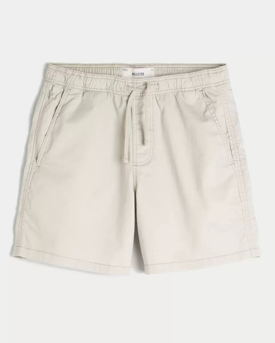 Comfortable twill shorts that hit mid thigh, designed with a pull-on drawstring waist. Pockets, right zipper pocket. Imported.