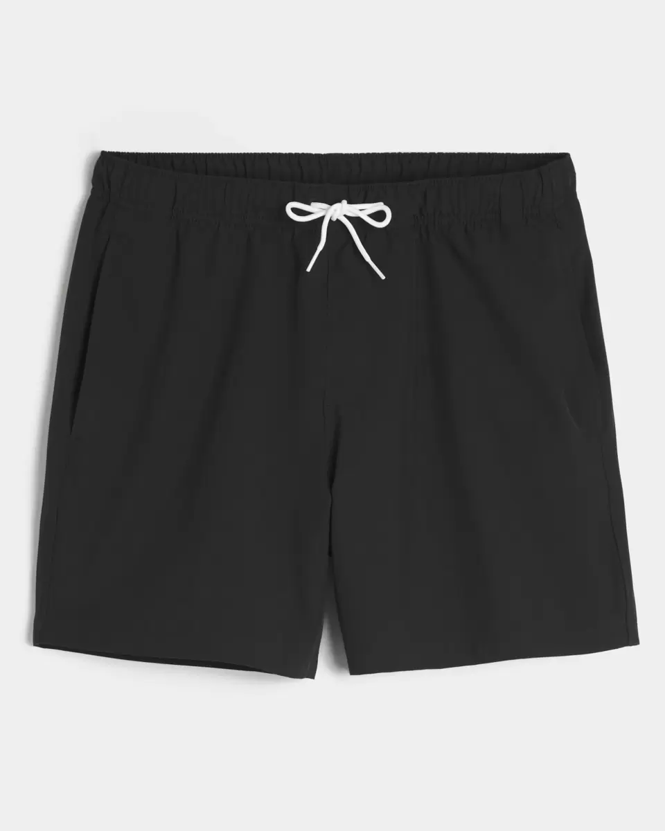 Shorter-length swim trunks that hit mid-thigh. Featuring comfortable 4-way stretch swim fabric and a 6″ inseam. Front pockets, mesh lining. Imported.