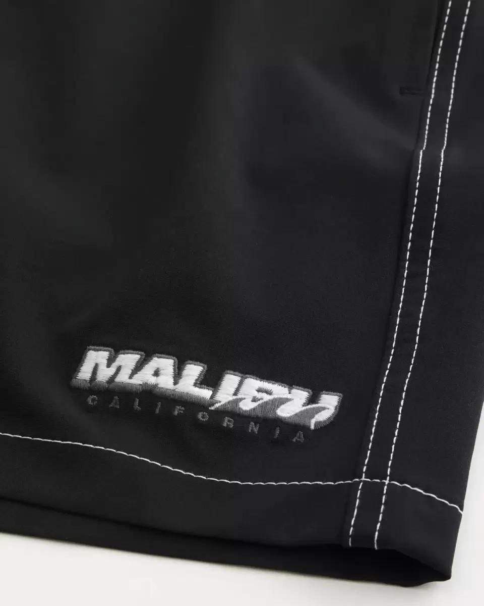 Shorter-length swim trunks that hit mid-thigh. Featuring comfortable 4-way stretch swim fabric and a 6″ inseam. Pockets, contrast stitching, embroidered Malibu California detail. Imported.