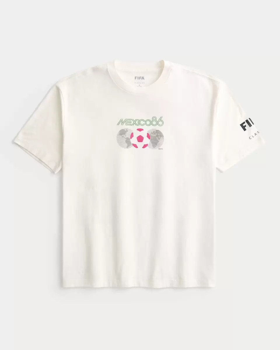 A super soft 100% cotton tee featuring official licensed FIFA World Cup Mexico 86 print graphics at the front, back and left sleeve. Crew neckline, short sleeves. Boxy Fit. Imported.