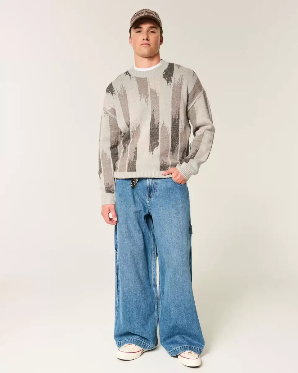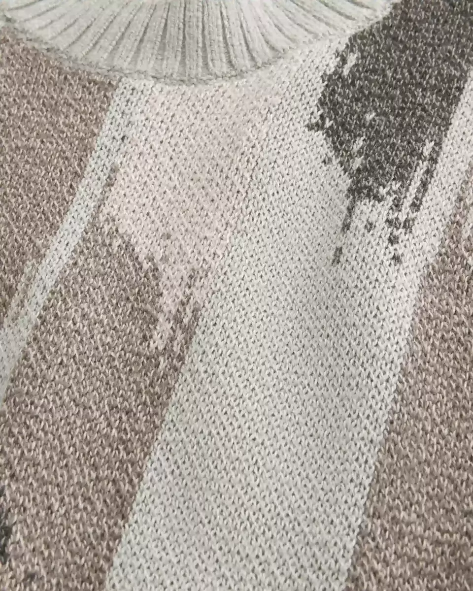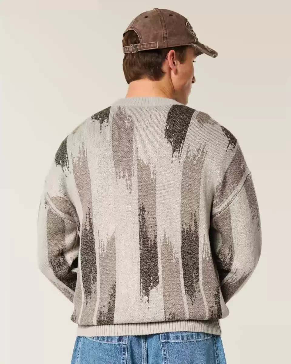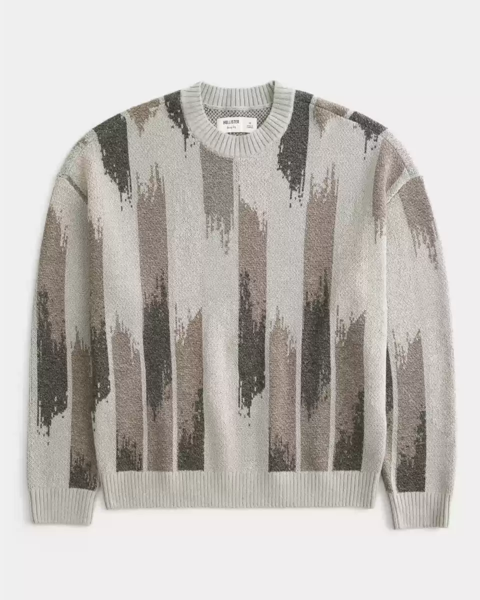 A super soft and comfortable sweater with stitched patterns and a crew neckline. Ribbed trims, long sleeves. Boxy Fit.