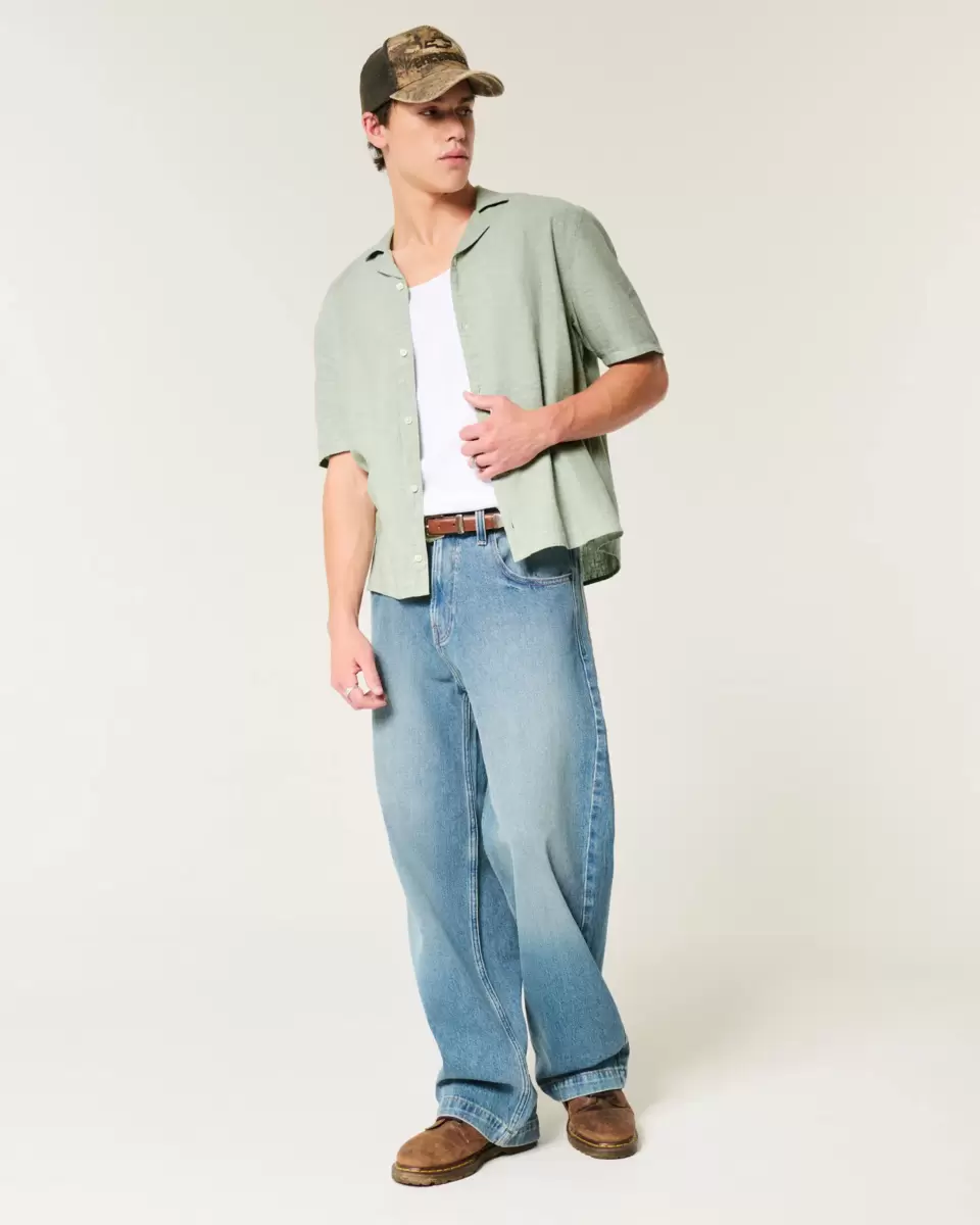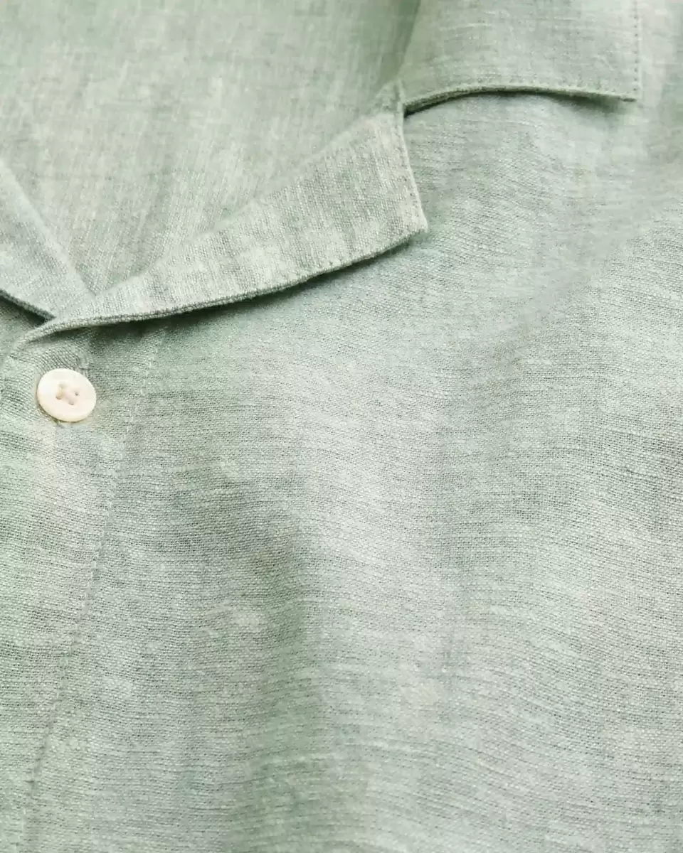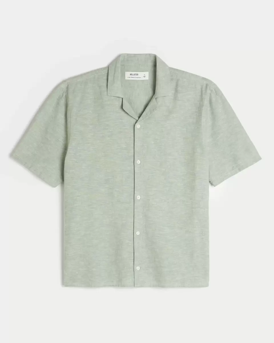 This classic button-through shirt is made with a soft linen blend. Collar, short sleeves.