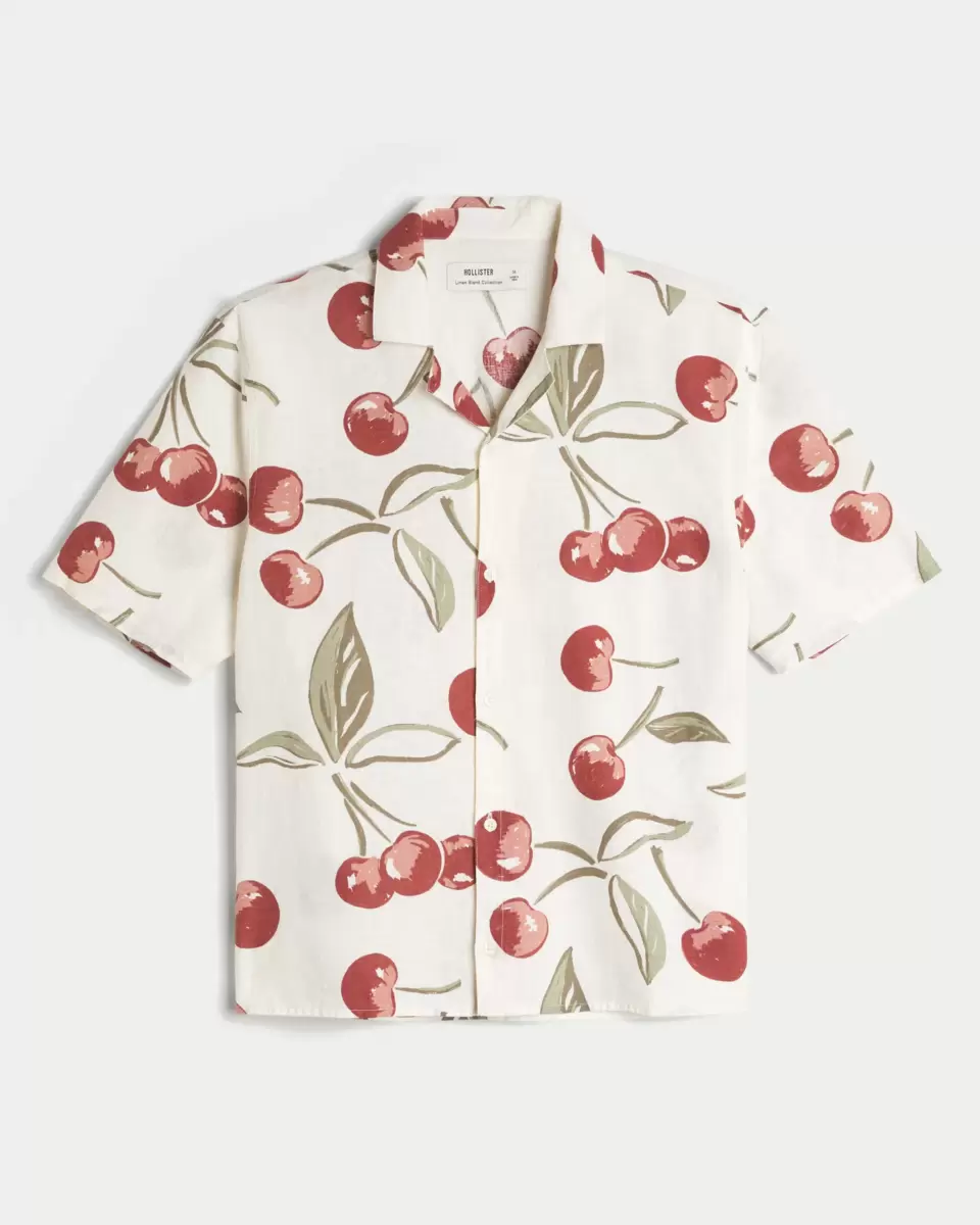 A classic shirt made with a soft linen blend. Full button closure, collar, short sleeves. Boxy Fit. Imported.