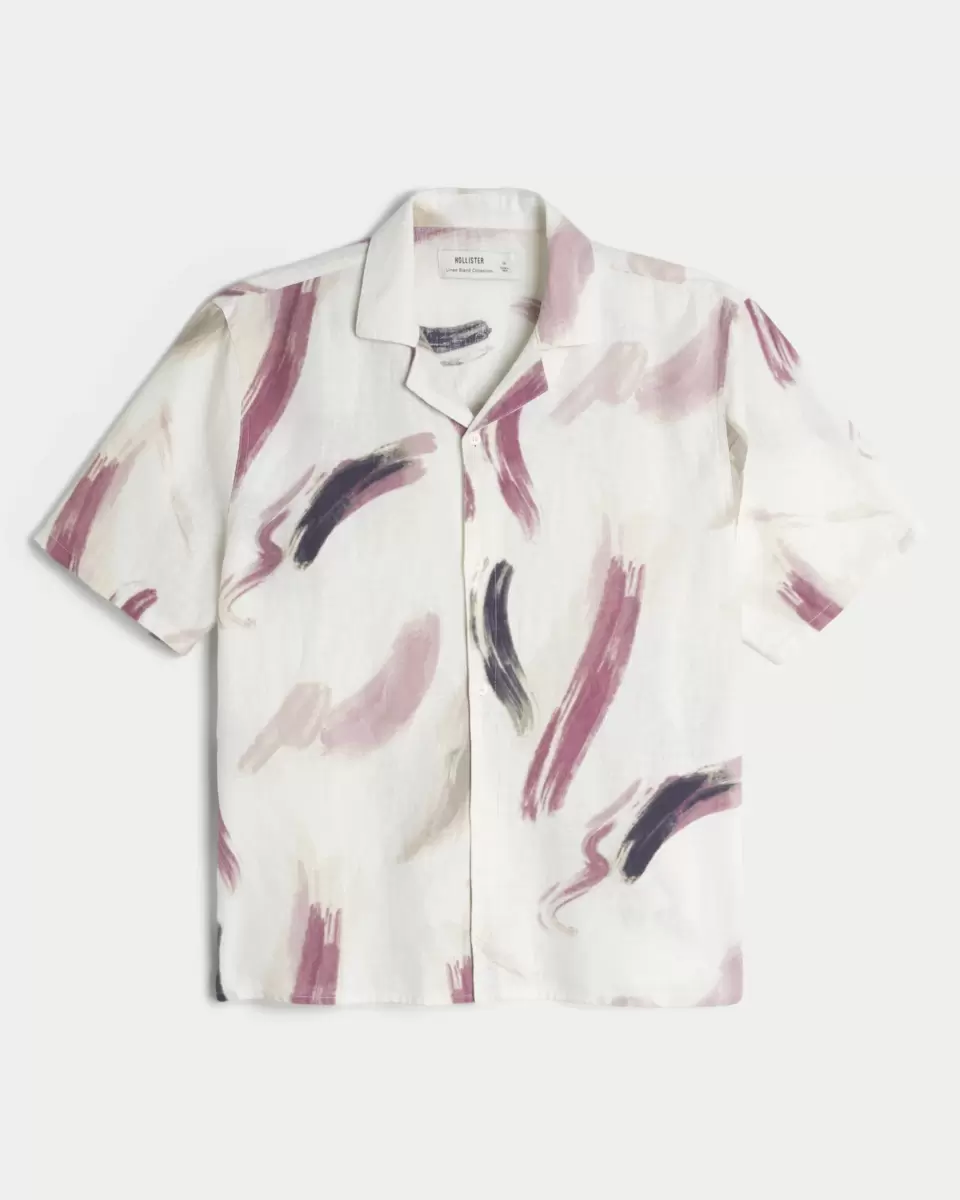 A classic shirt in a soft linen blend, designed with a button closure. Short sleeves, all-over pattern, collar. Imported.
