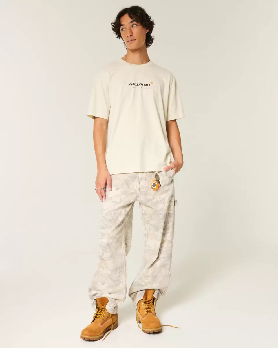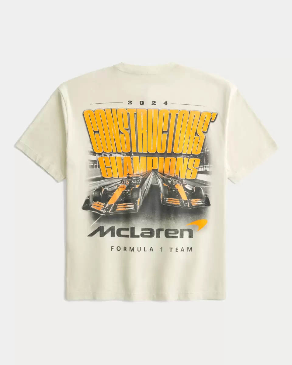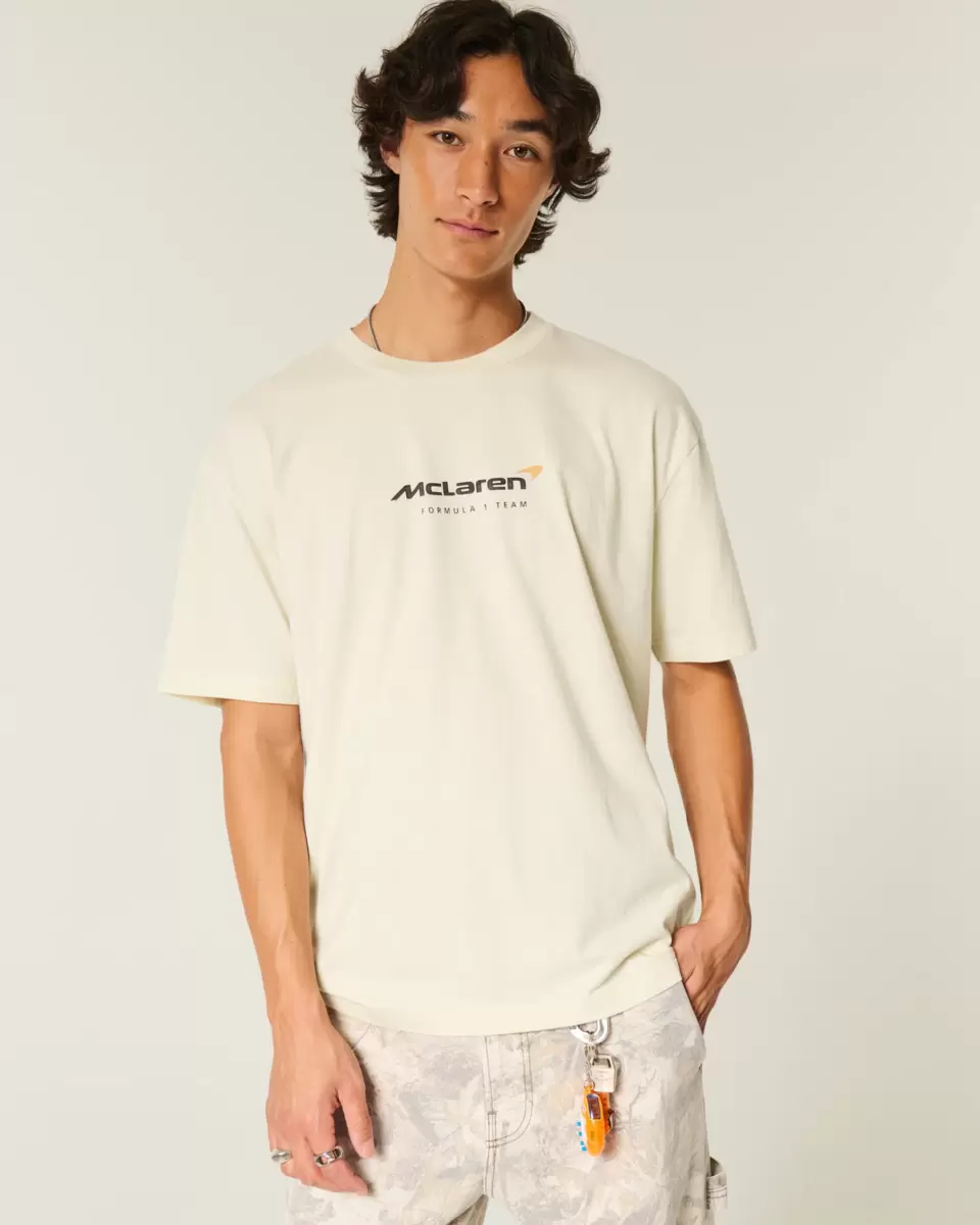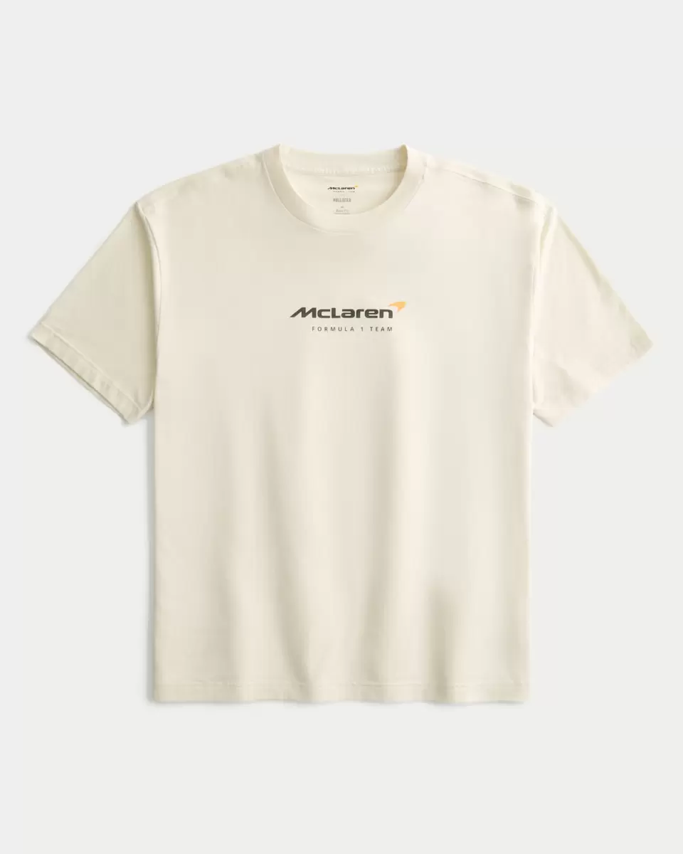 A super soft 100% cotton tee featuring official licensed McLaren Formula 1 Team print graphics at the front and back. Crew neckline, short sleeves. Boxy Fit.