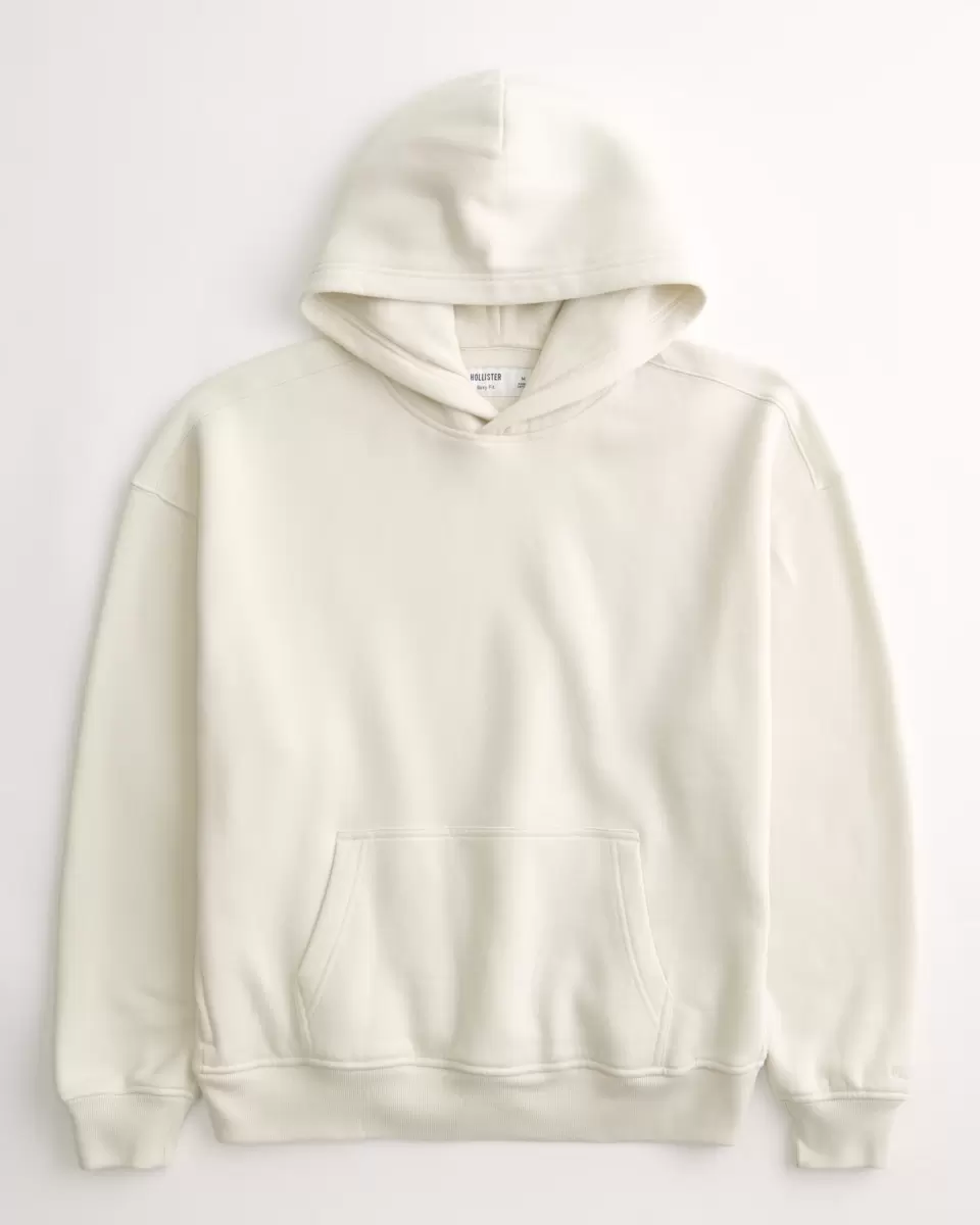 A super soft fleece hoodie with long sleeves and a front pouch pocket. Hood. Boxy Fit. Imported.