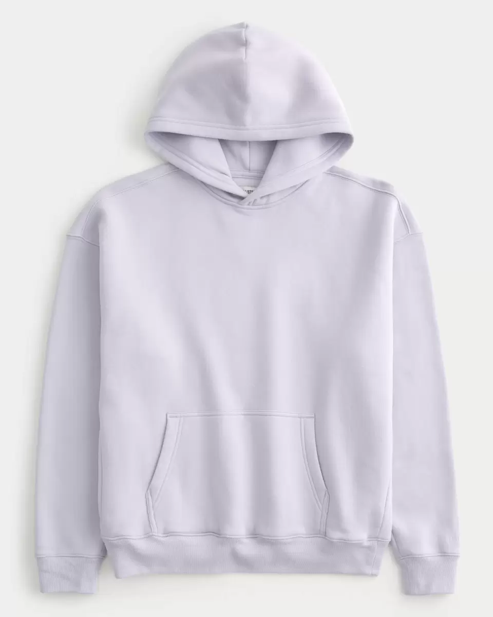 A comfortable and super soft fleece hoodie with a front pouch pocket and long sleeves. Hood. Boxy Fit. Imported.