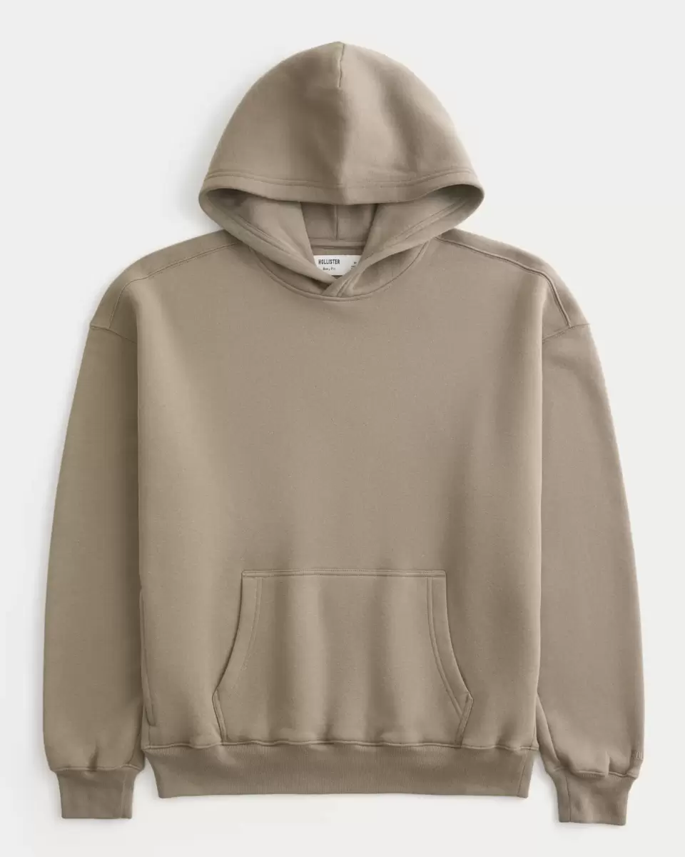 A super soft and comfortable fleece hoodie with a front pouch pocket and long sleeves. Embroidered logo detail at left sleeve, hood. Boxy Fit. Imported.