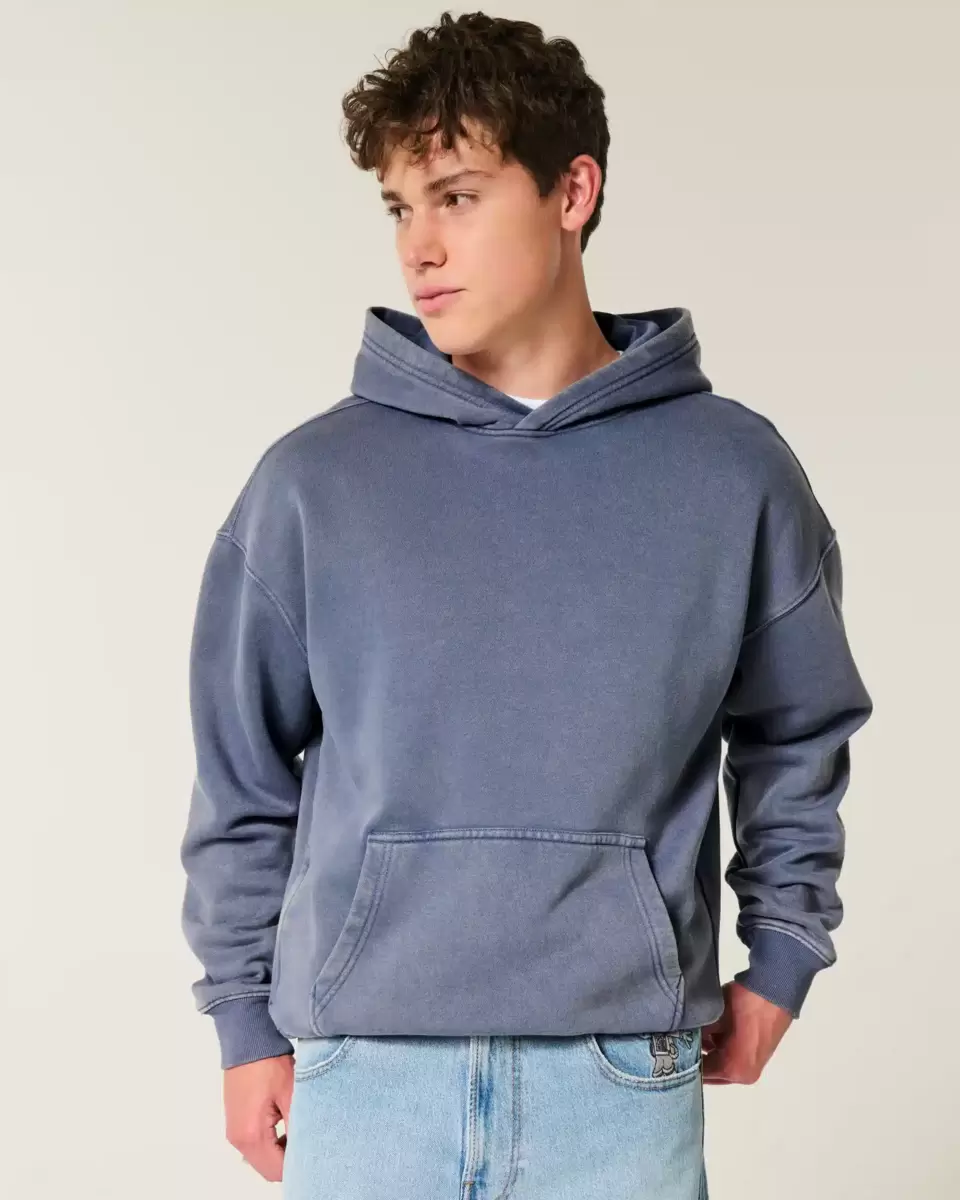 A super soft fleece hoodie with long sleeves and a front pouch pocket. Hood. Boxy Fit. Imported.