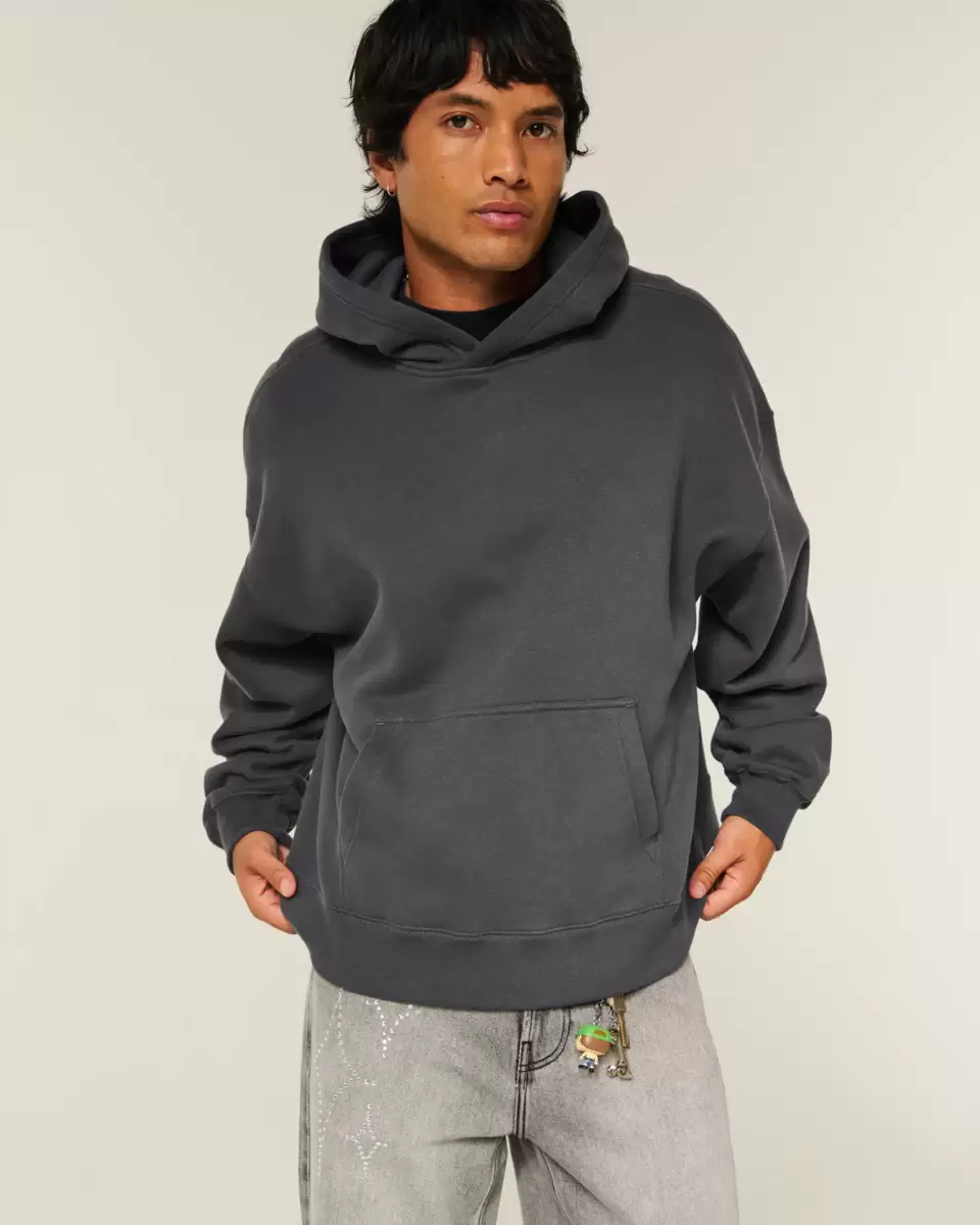 A super soft hoodie with long sleeves and a front pouch pocket in our new Rectangle Fit.