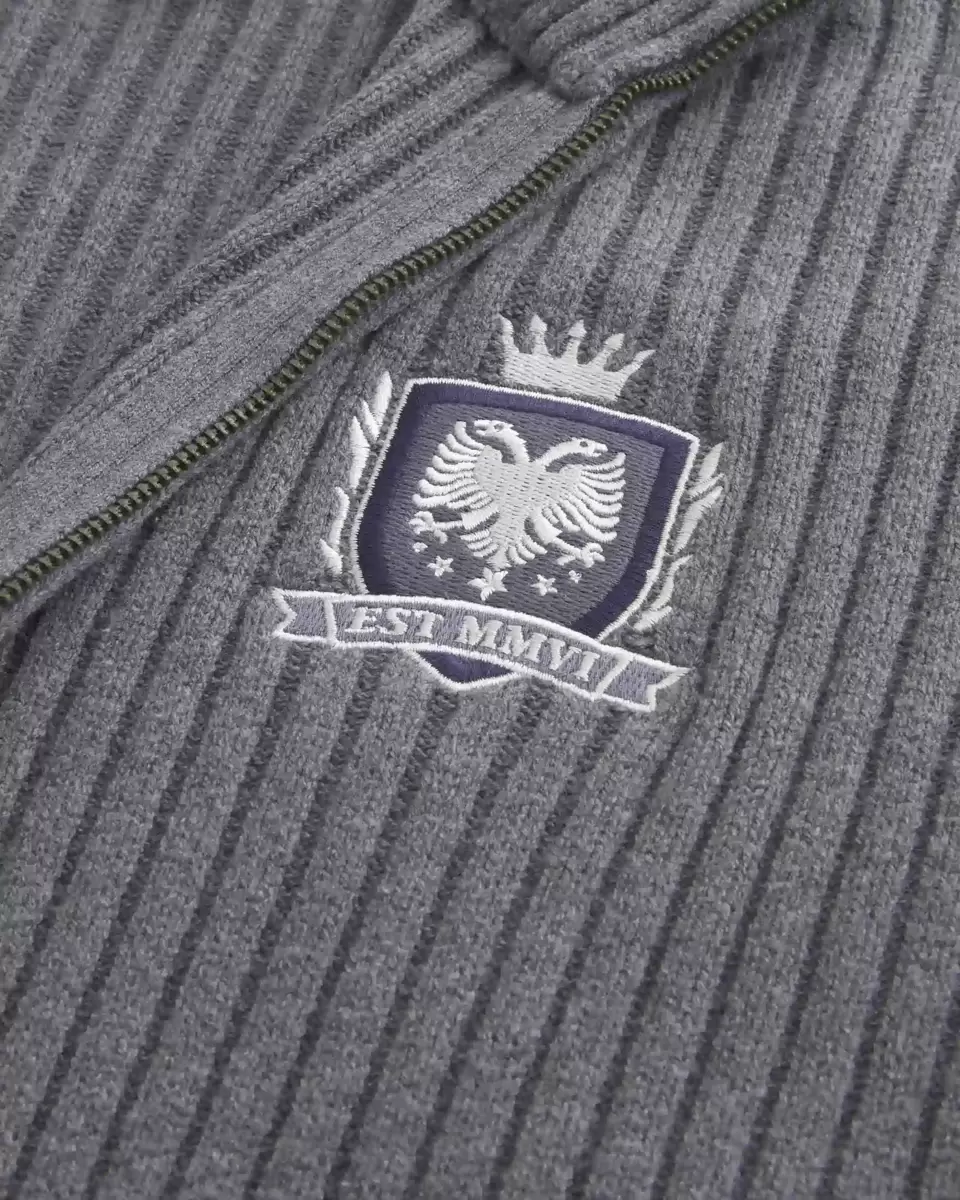This super soft sweater features a mock-neck collar, full zip-up closure and graphic embroidery at the left chest. Ribbed trims, long sleeves. Relaxed Fit.