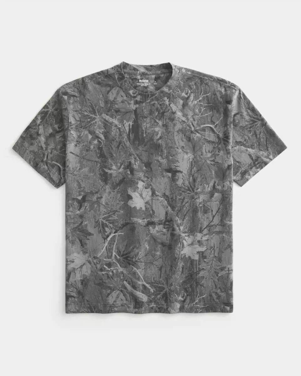 A super soft t-shirt in heavyweight 100% cotton, featuring an all-over camo pattern. Crew neckline, short sleeves. Boxy Fit.