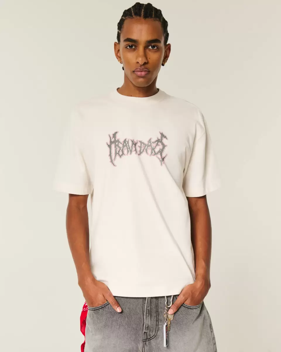 A super soft, heavyweight 100% cotton tee featuring Heavy Daze print graphics. Crew neckline, short sleeves. Boxy Fit.