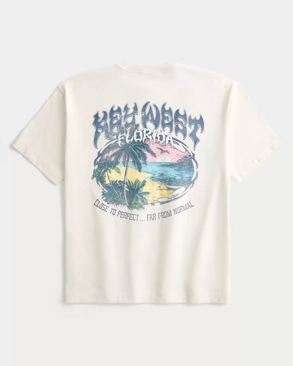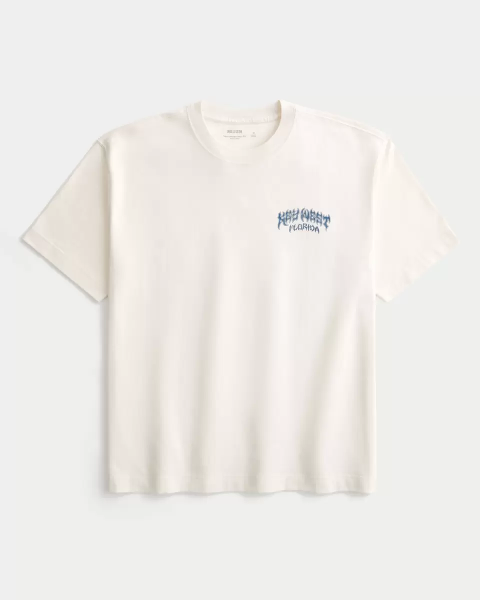 A super soft, heavyweight 100% cotton tee featuring Key West Florida print graphics at the left chest and back. Crew neckline, short sleeves. Boxy Fit.