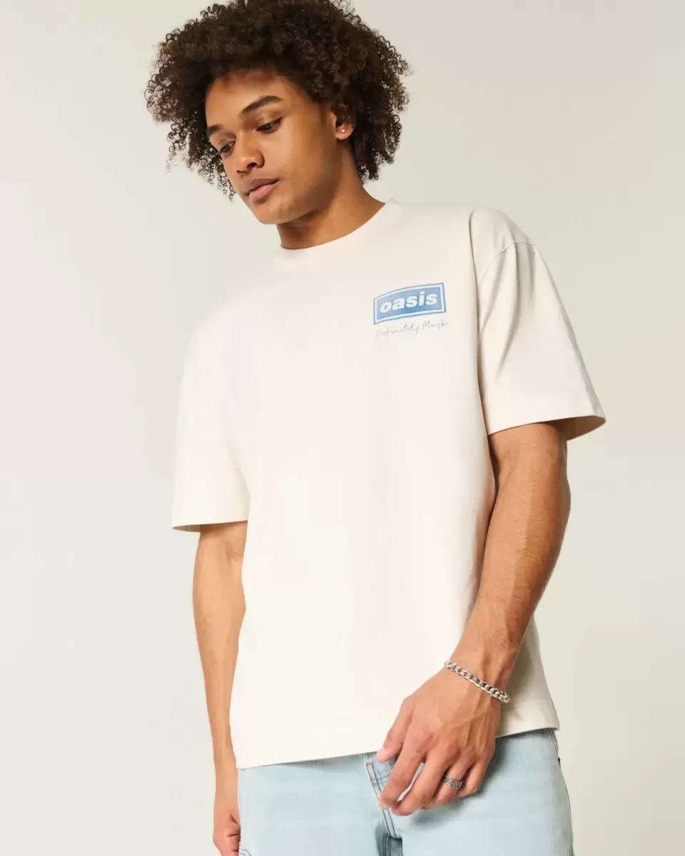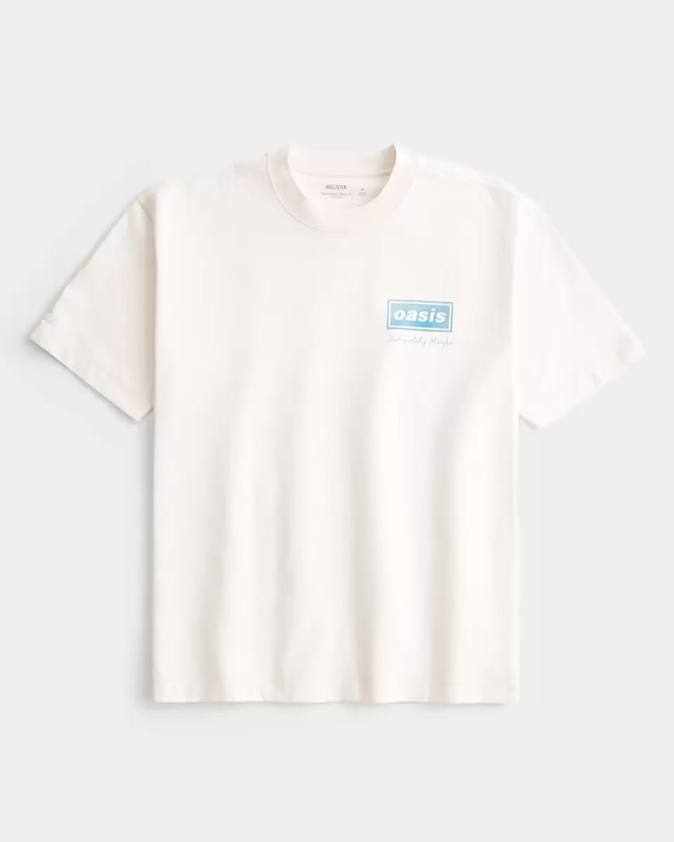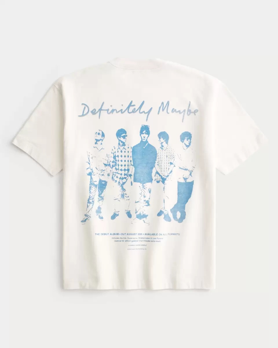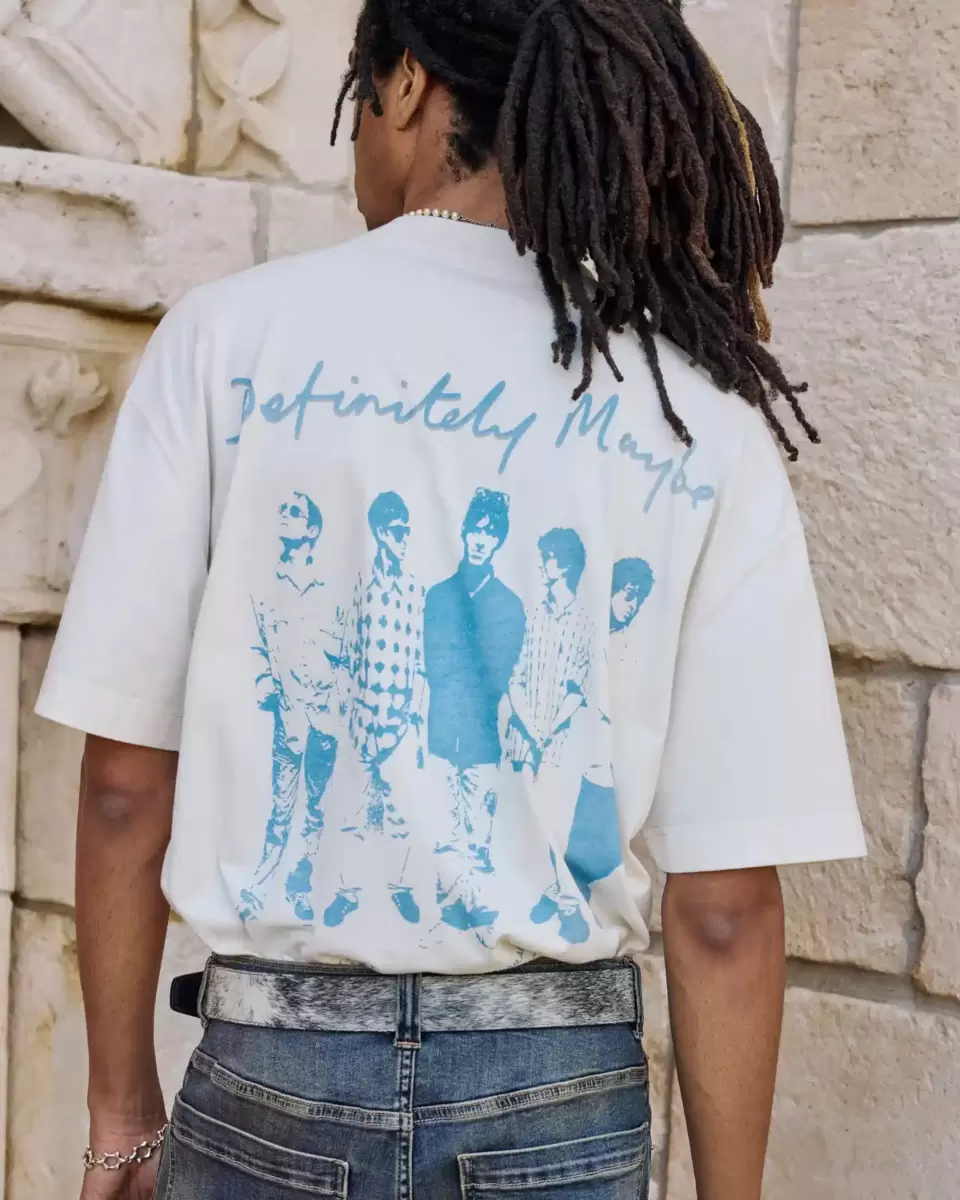 A super soft, heavyweight tee in 100% cotton featuring official licensed Oasis Definitely Maybe print graphics at left chest and back. Crew neckline, short sleeves. Boxy Fit.