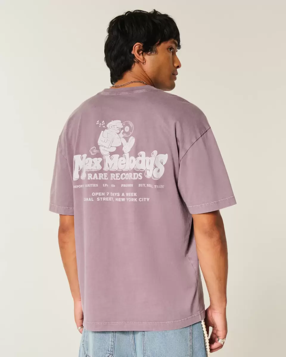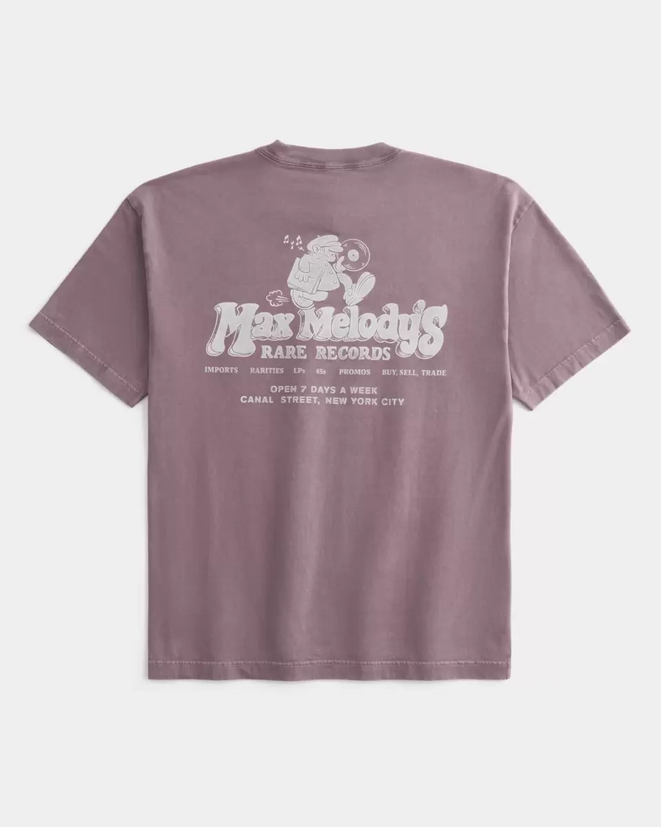 A super soft 100% cotton featuring Max Melody’s Rare Records New York City print graphics at the left chest and back. Crew neckline, short sleeves. Boxy Fit.