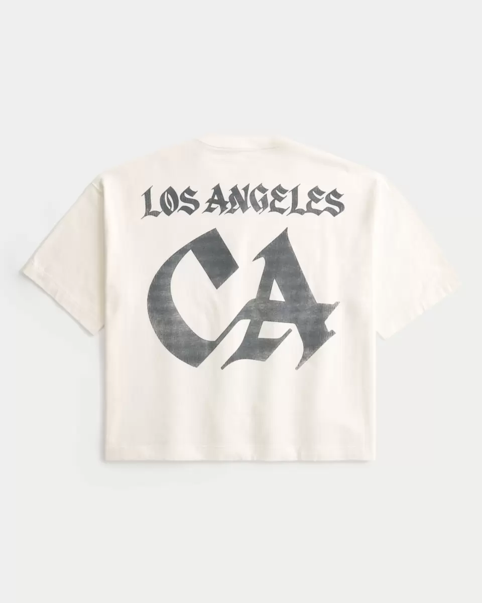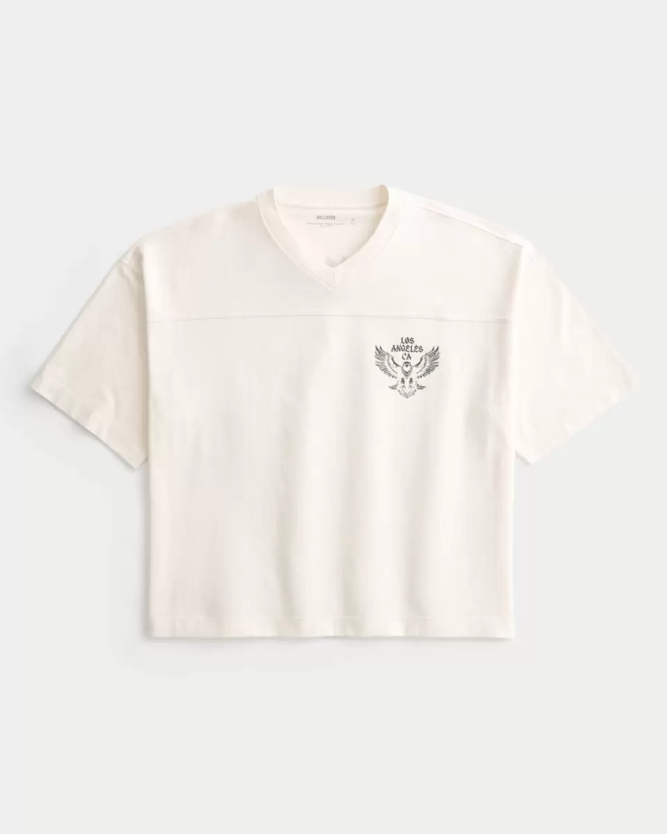 This super soft football t-shirt is made with super soft, heavyweight 100% cotton. Featuring Los Angeles print graphics at the left chest and back, v-neckline, short sleeves. Baggy Crop Fit.
