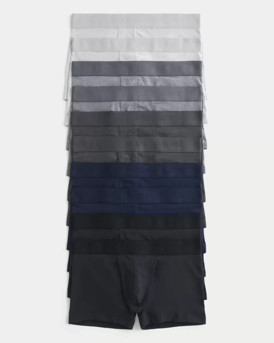 A 10-pack of Classic Length Boxer Briefs designed with comfortable, stretch knit fabric and contour pouch for support. Soft elastic waistband with logo details. Imported.