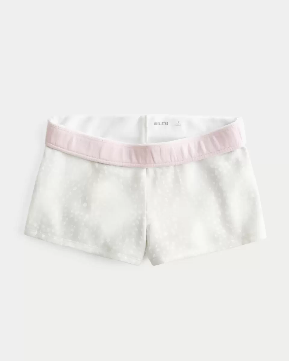 Super soft fleece mini shorts with a banded waist that looks cute folded over. All-over doe print. Imported.