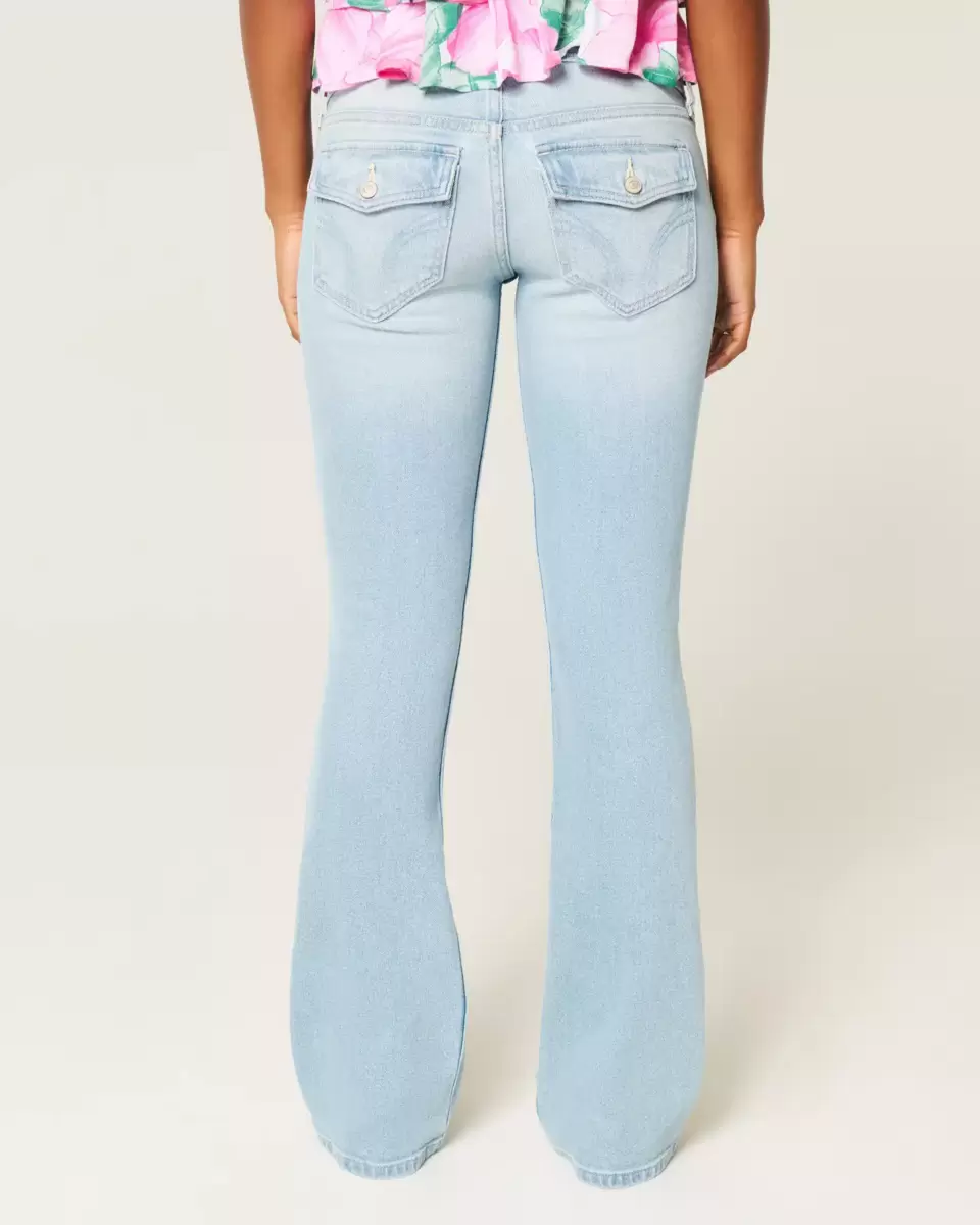 Cute and comfy jeans in a light wash, designed with a low-rise waist, slim leg and boot hem. Fading, whiskering. Made with Vintage Stretch denim. Imported.