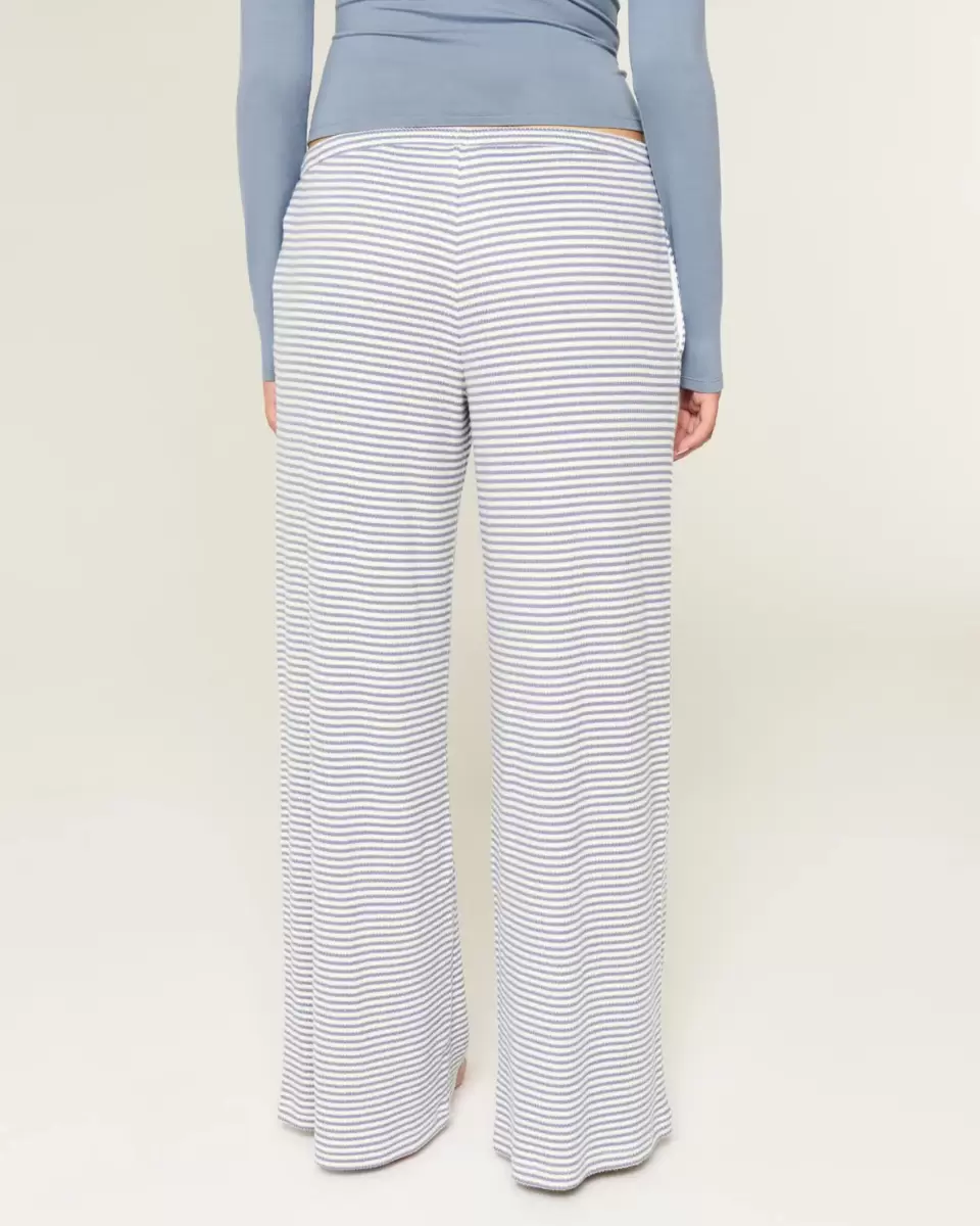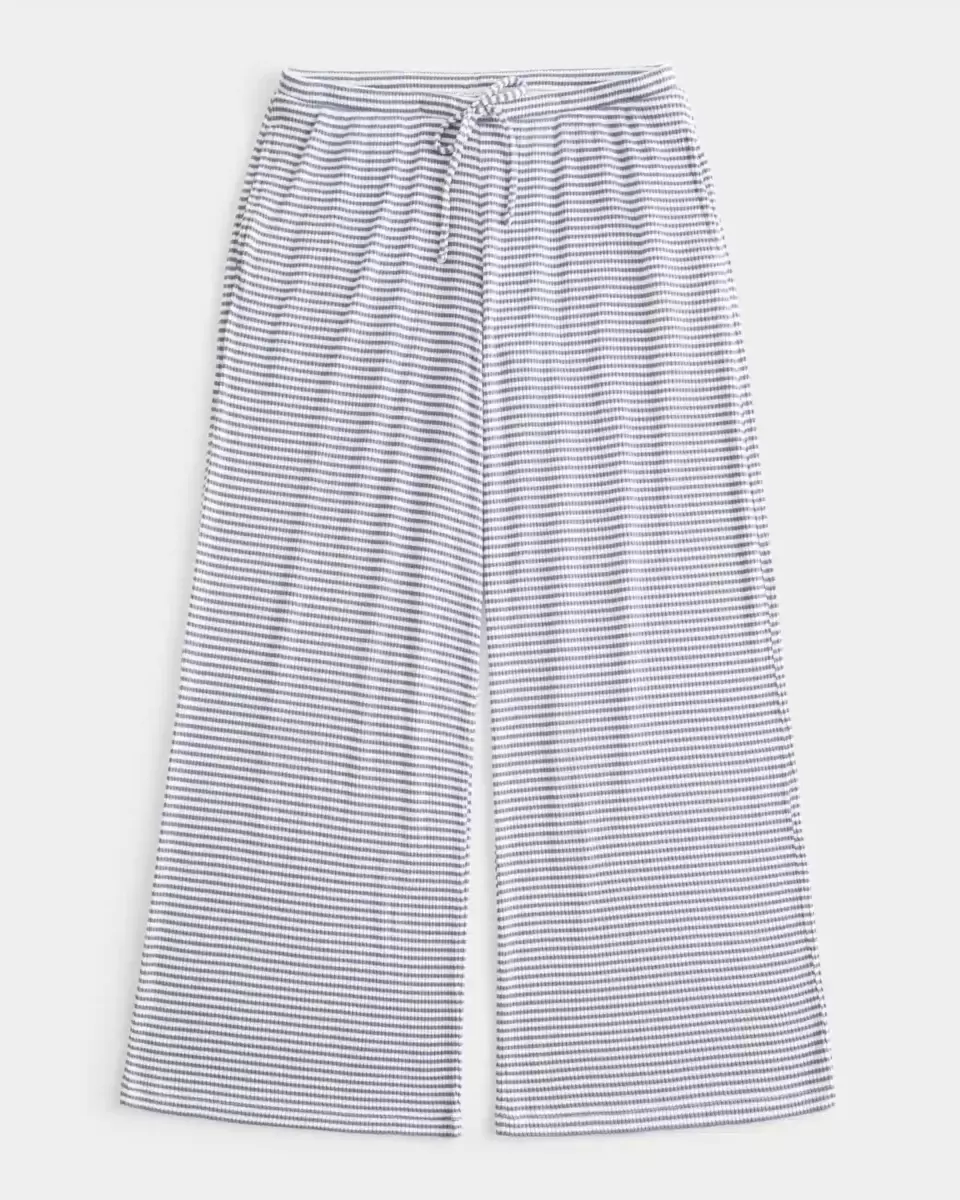 Super cute and comfortable wide-leg pants made with cozy ribbed fabric. Drawstring waist, pockets. Imported.