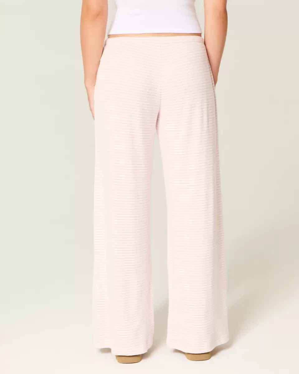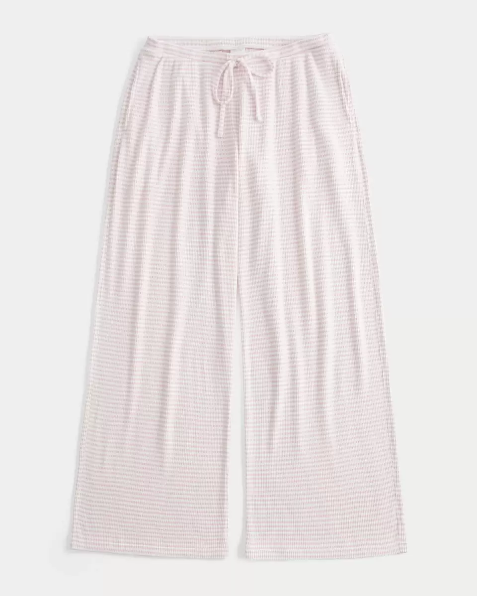 Super cute and comfortable wide-leg pants made with cozy ribbed fabric. Drawstring waist, pockets. Imported.