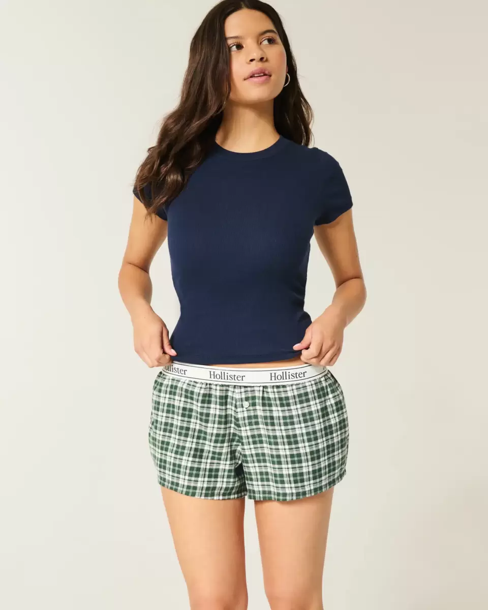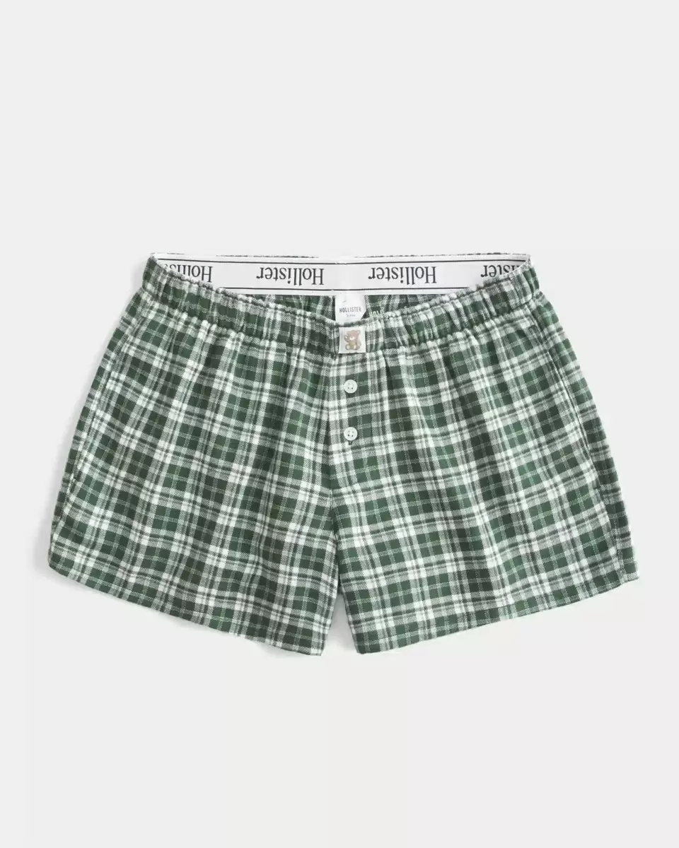 Super soft flannel boxer shorts with an all-over pattern and soft waistband with interior logo details. Pockets. Imported.