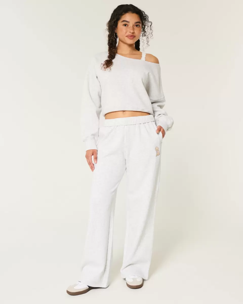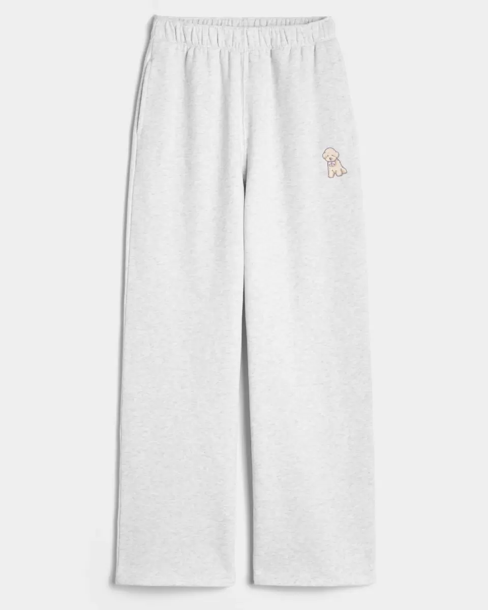 Super soft fleece sweatpants designed with a baggy leg and banded waist. Embroidered dog graphic, banded ultra high-rise waist, pockets. Imported.