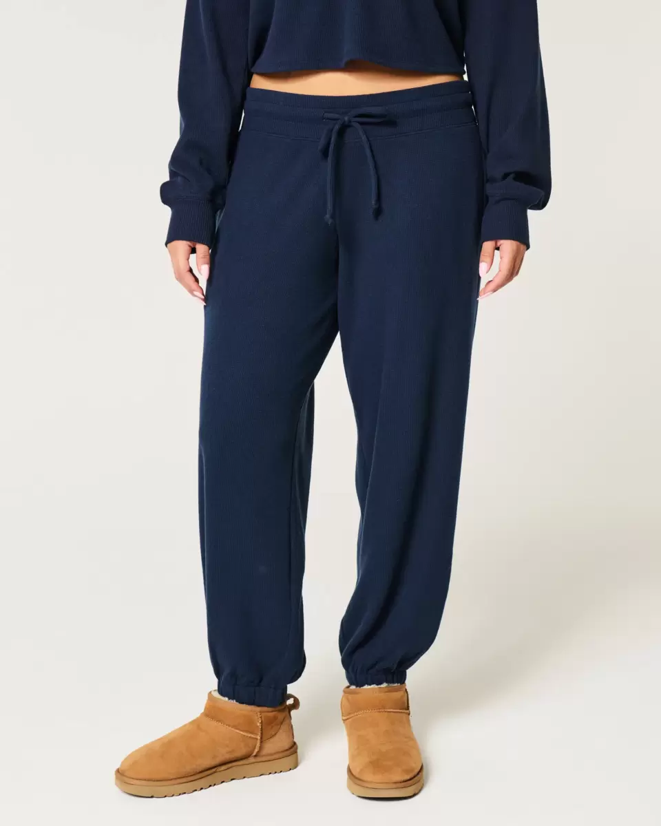 Cozy and super soft joggers in waffle fabric, designed with a relaxed leg. Drawstring waist, pockets, banded hems. Imported.