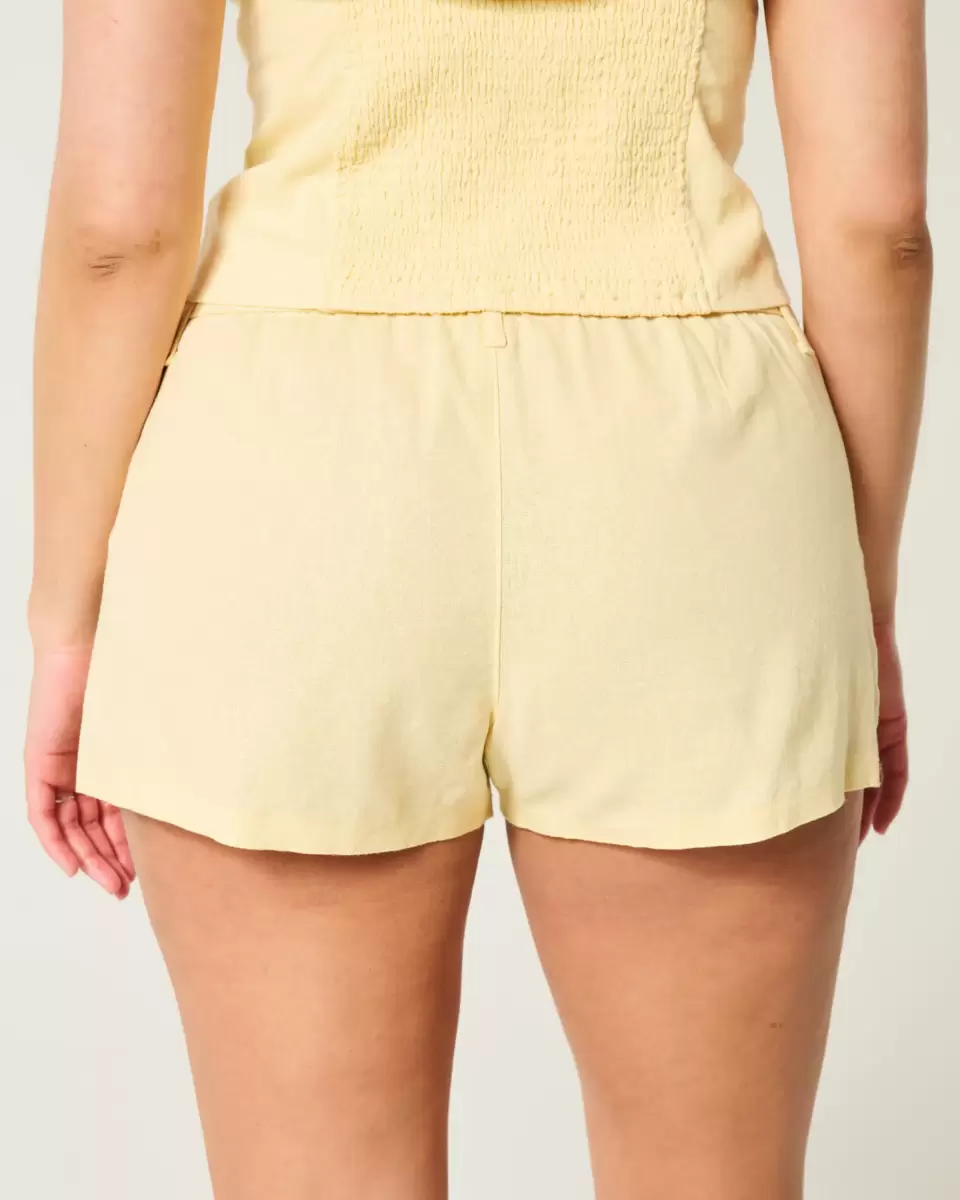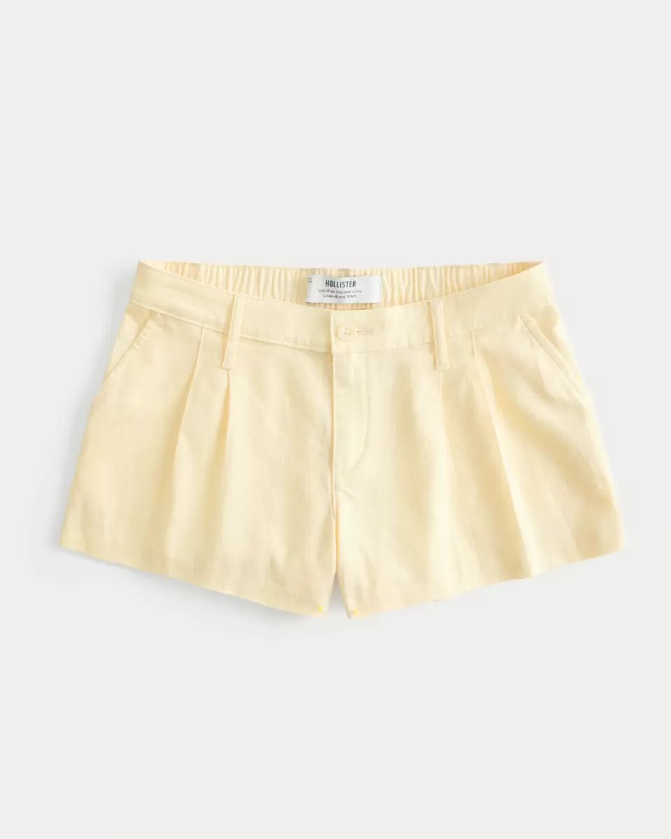 Cute and comfy shorts in a soft linen blend, designed with a low-rise waist with pleats for a classic tailored look. Imported.