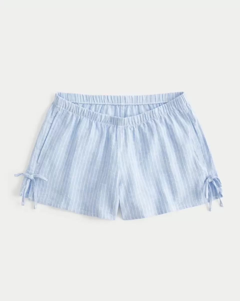 Your new fave shorts are soft and comfy and feature cute side bow details. Banded low-rise waist, soft linen-blend fabric, pockets. Imported.