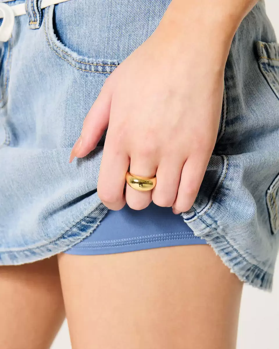 A cute denim mini skort designed with a flattering low-rise waist and hidden knit shorts. Light wash, removable shoelace at waist.