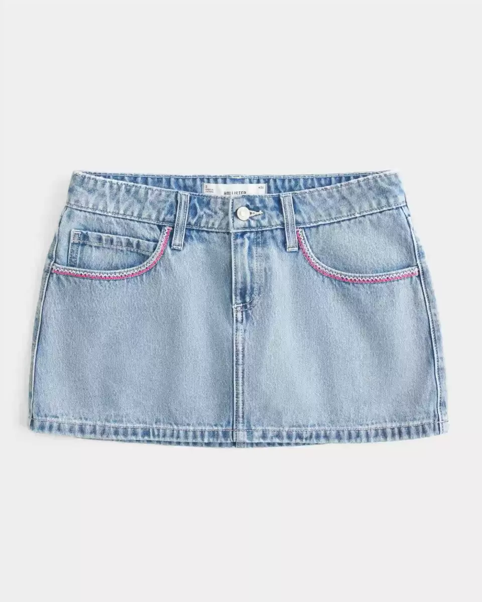 Be the first to review “Low-Rise Pink Embroidered Light Wash Denim Mini Skort”
