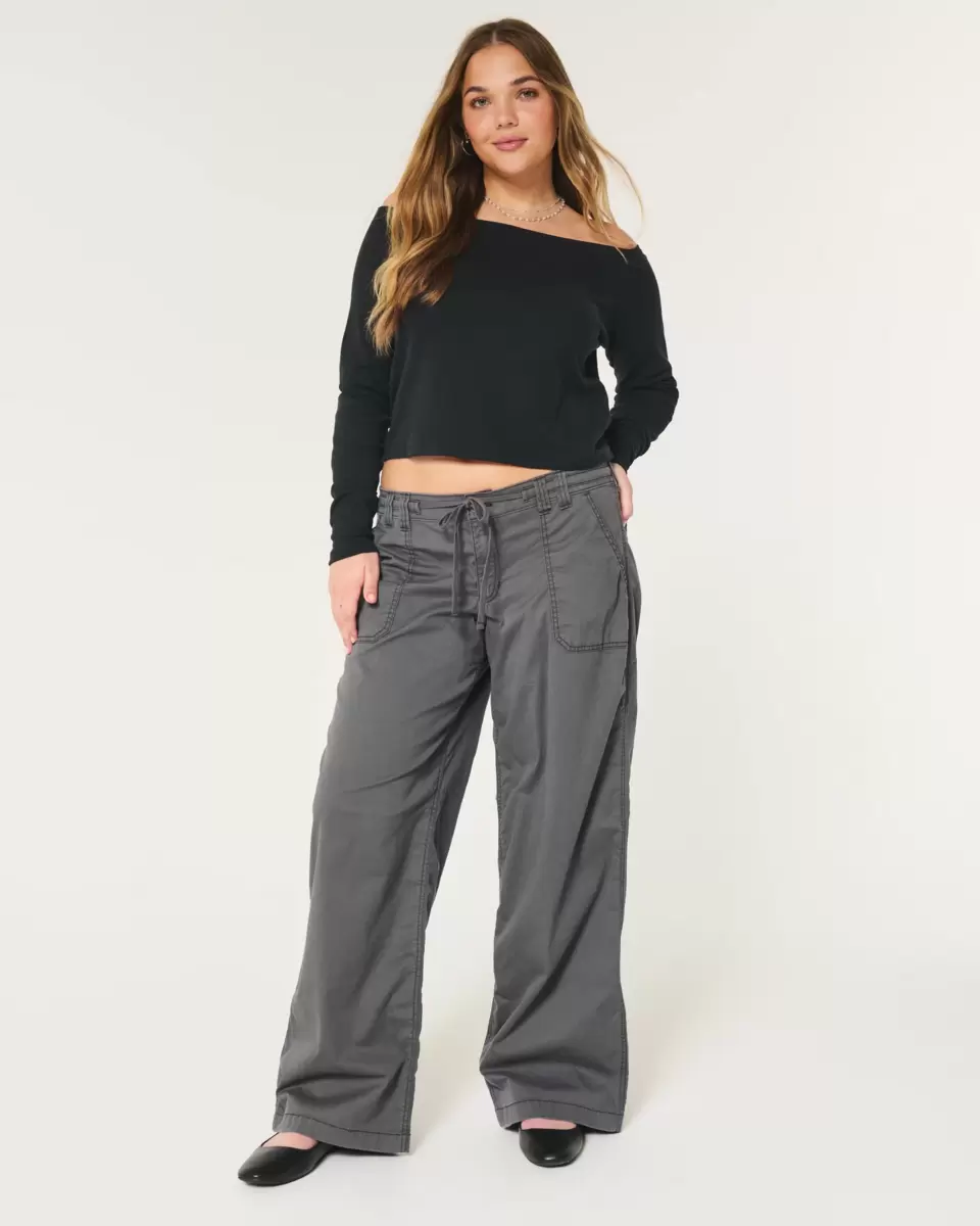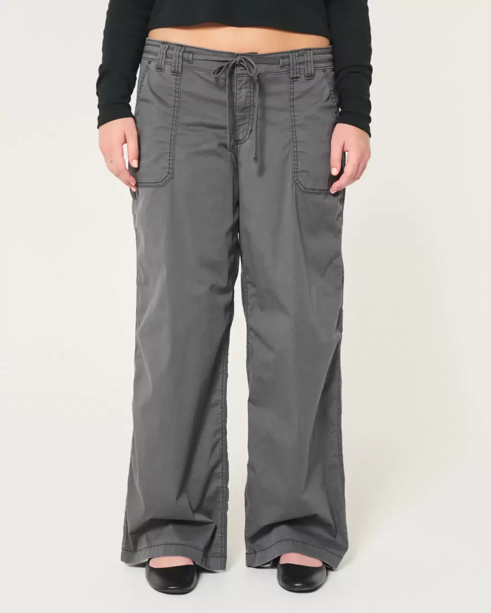 Ultra-comfortable pants designed with a super baggy leg and low-rise drawstring waist. Comfort waistband, pockets. Imported.