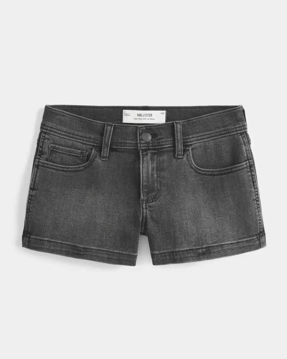 Cute and comfy denim shortie shorts in washed black. Low-rise waist. Imported.