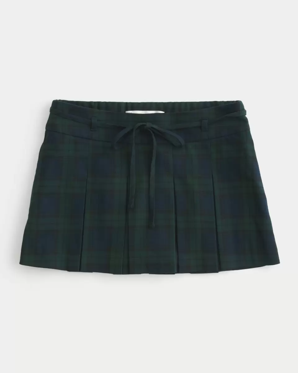 This cute mini skort is designed with a mid-rise waist with tie and classic pleats. Hidden shorts, pockets. Imported.
