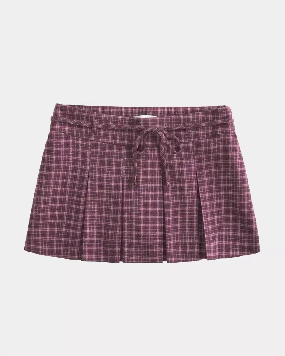 This cute mini skort is designed with a mid-rise waist with tie and classic pleats. Hidden shorts, pockets. Imported.