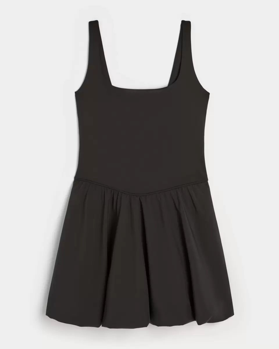This cute and super soft bubble dress features a built-in shelf bra with removable pads. Ruffled hem, built-in shorts with pocket. Imported.